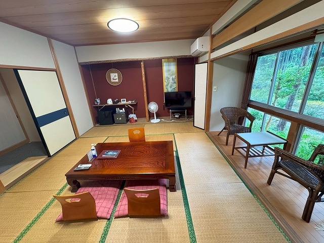 自然豊かな宿、旅館裏には清流高見川が流れ、瀬音そして自然。