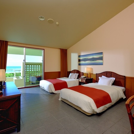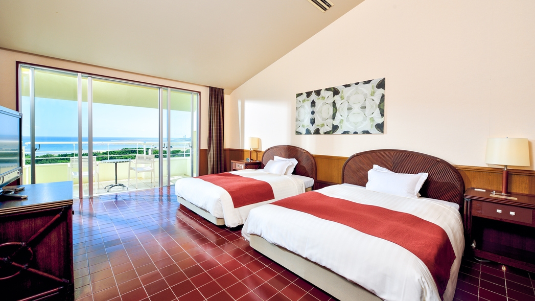 プレミアムデラックスツイン 洋室ツインタイプ 広々としたお部屋に全室オーシャンビューバルコニー付き