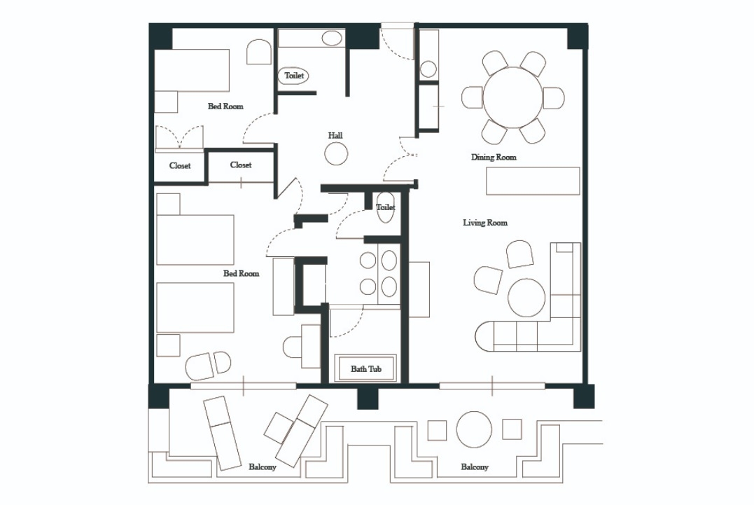 お部屋には全客室リビングルームがあり、2世代でのご家族のご利用やご友人とのご旅行に最適です。