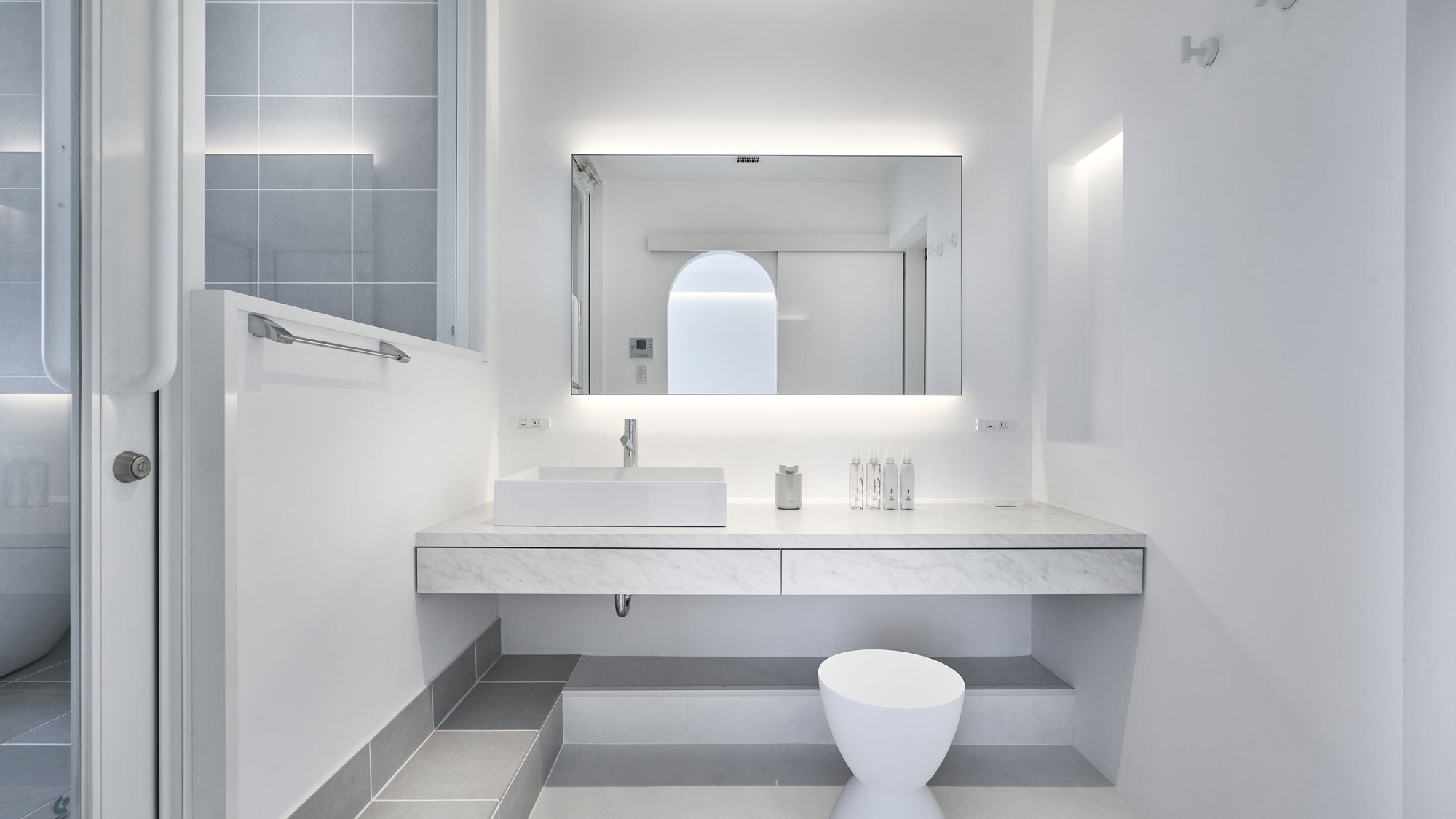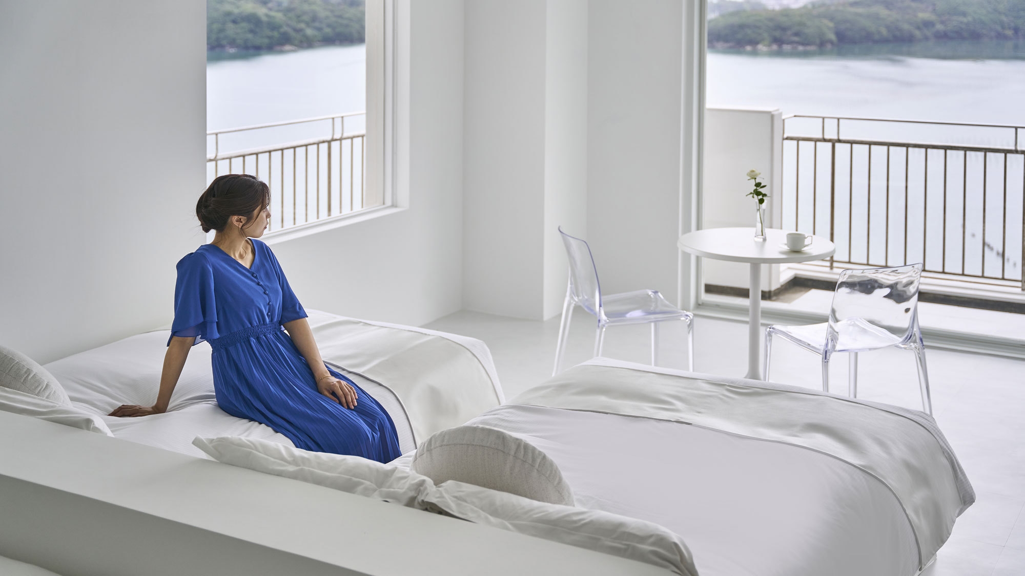 伊勢神宮を有する神聖なエリアにふさわしく、 海が育む真珠の輝きのように、清らかな白に包まれる客室。