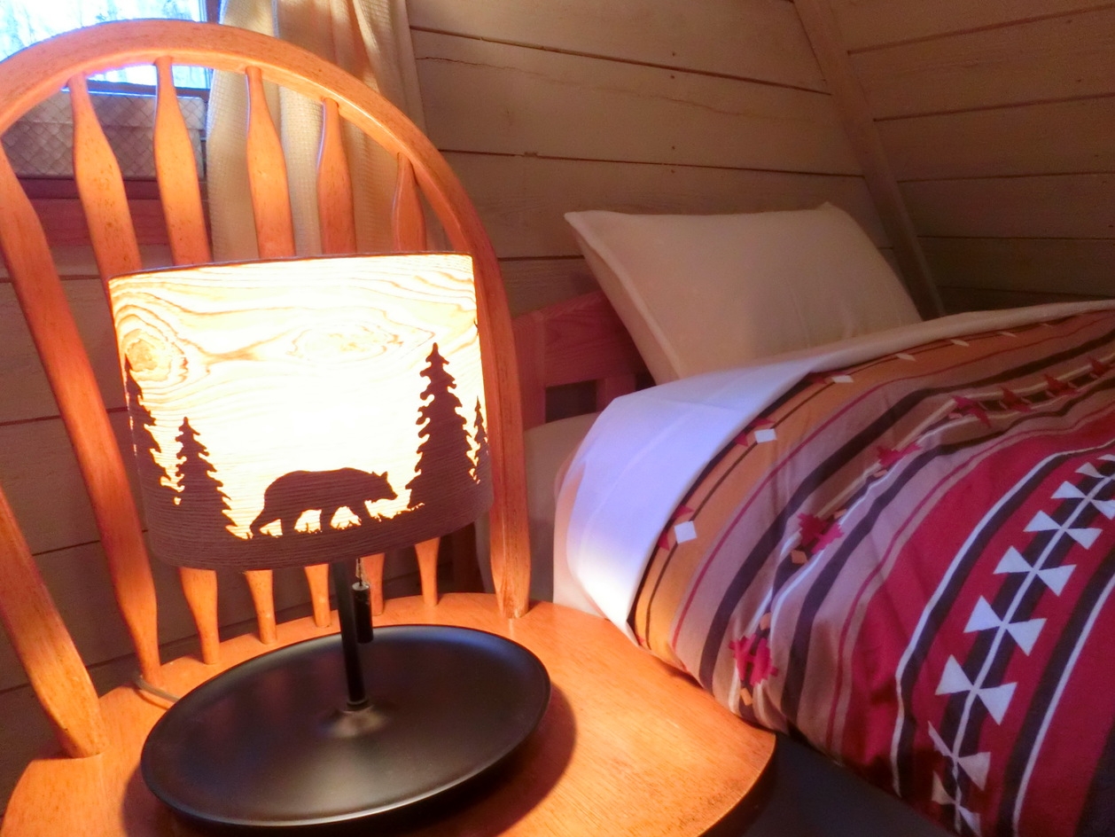 屋根裏がベッドルームの素朴なロッジ調のカントリーコテージはオーナーの手造り。北海道産の木材を床、壁、天井にとふんだんに使っているので、木の香りが室内に漂います♪