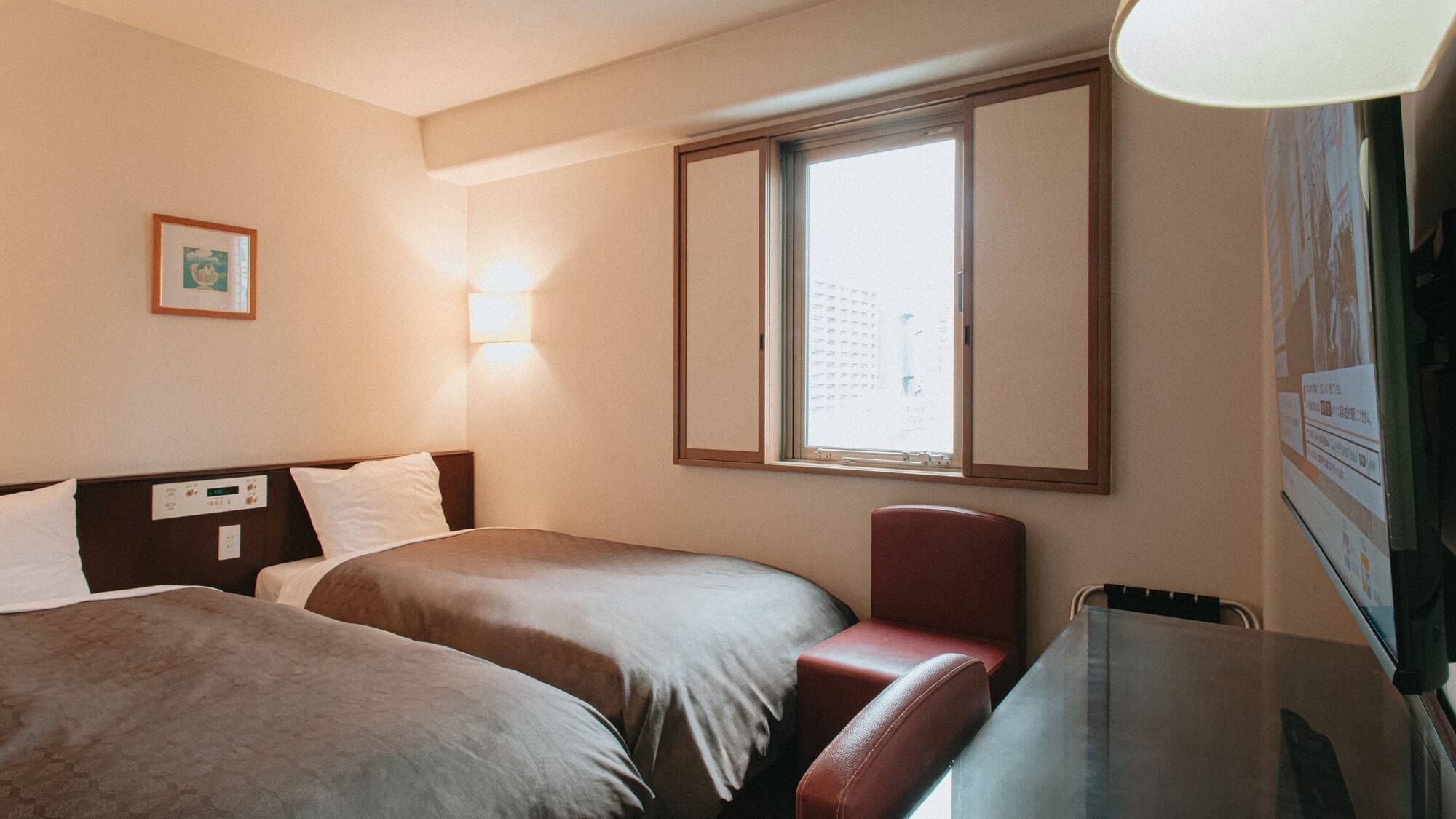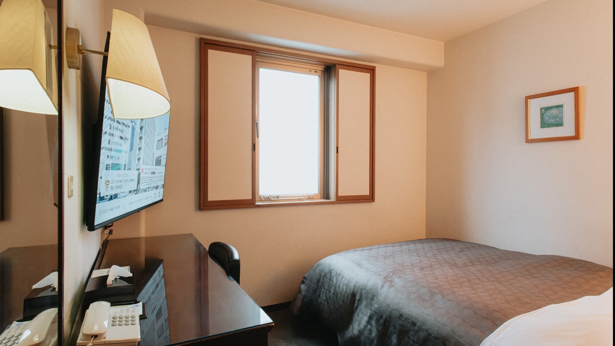 お部屋はタイトな分、リーズナブルにお泊りいただけます。シングルサイズのベッドが1台とソファベッドが1台です。