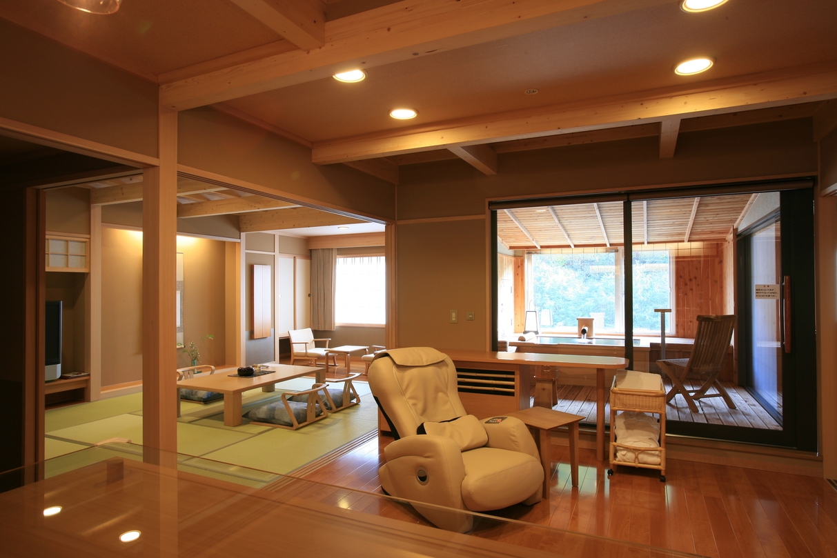 ○全室に露天風展望風呂とマッサージチェアをご用意しています。