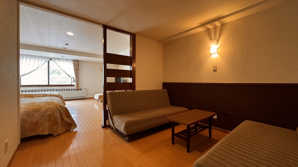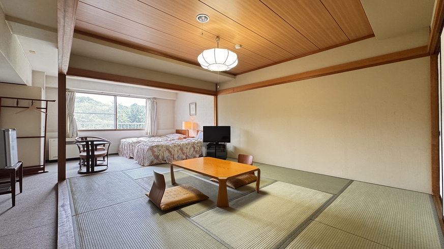 和室10畳にベッドが2つある広々とした和洋室。ファミリーに最適です! 清潔に保たれたお部屋は、旅の疲れ・日々の疲れを癒します。