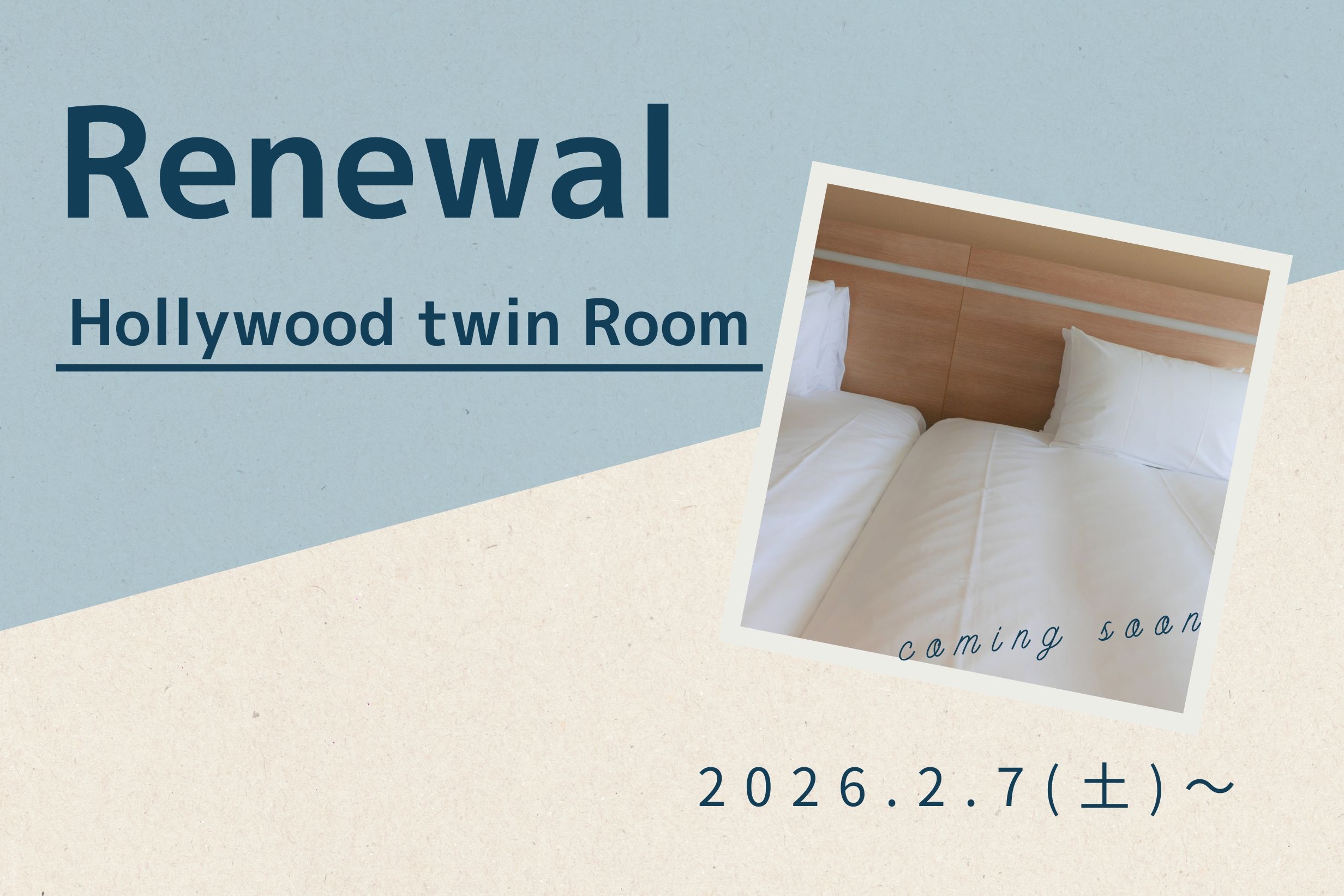 ベッド幅は90cmのシングルベッドを2台(ハリウッドツイン) ※基本設定は2台のシングルベッドを隙間なく並べて配置しております。