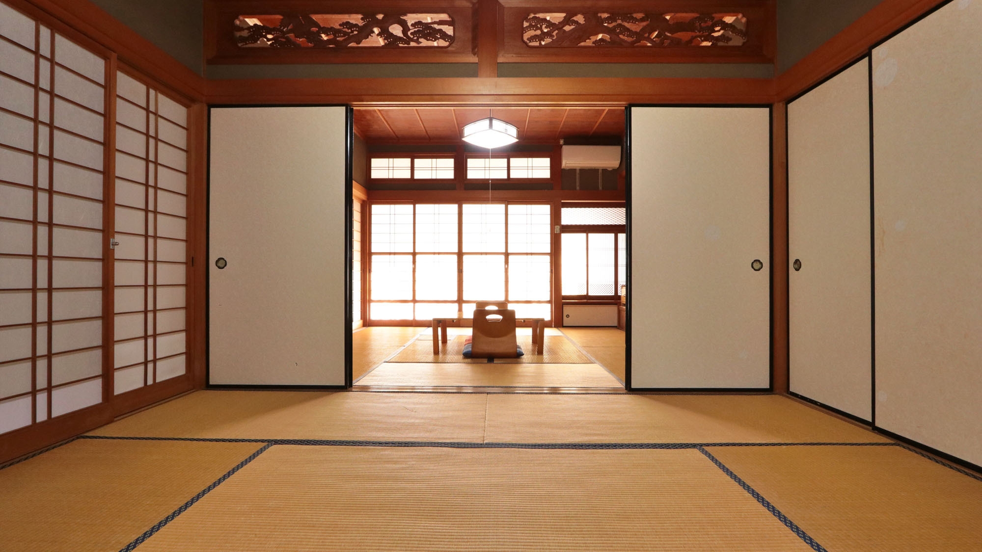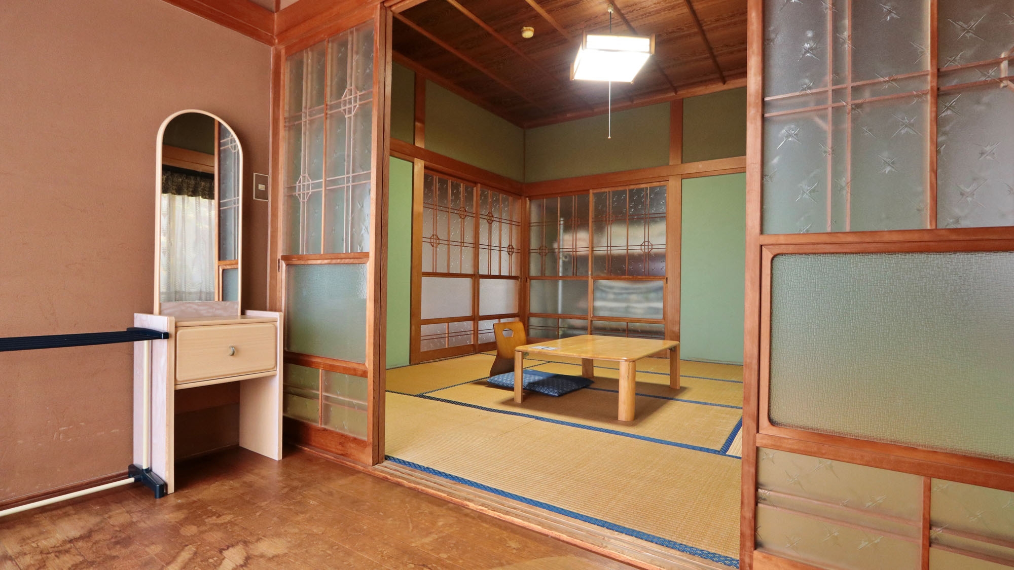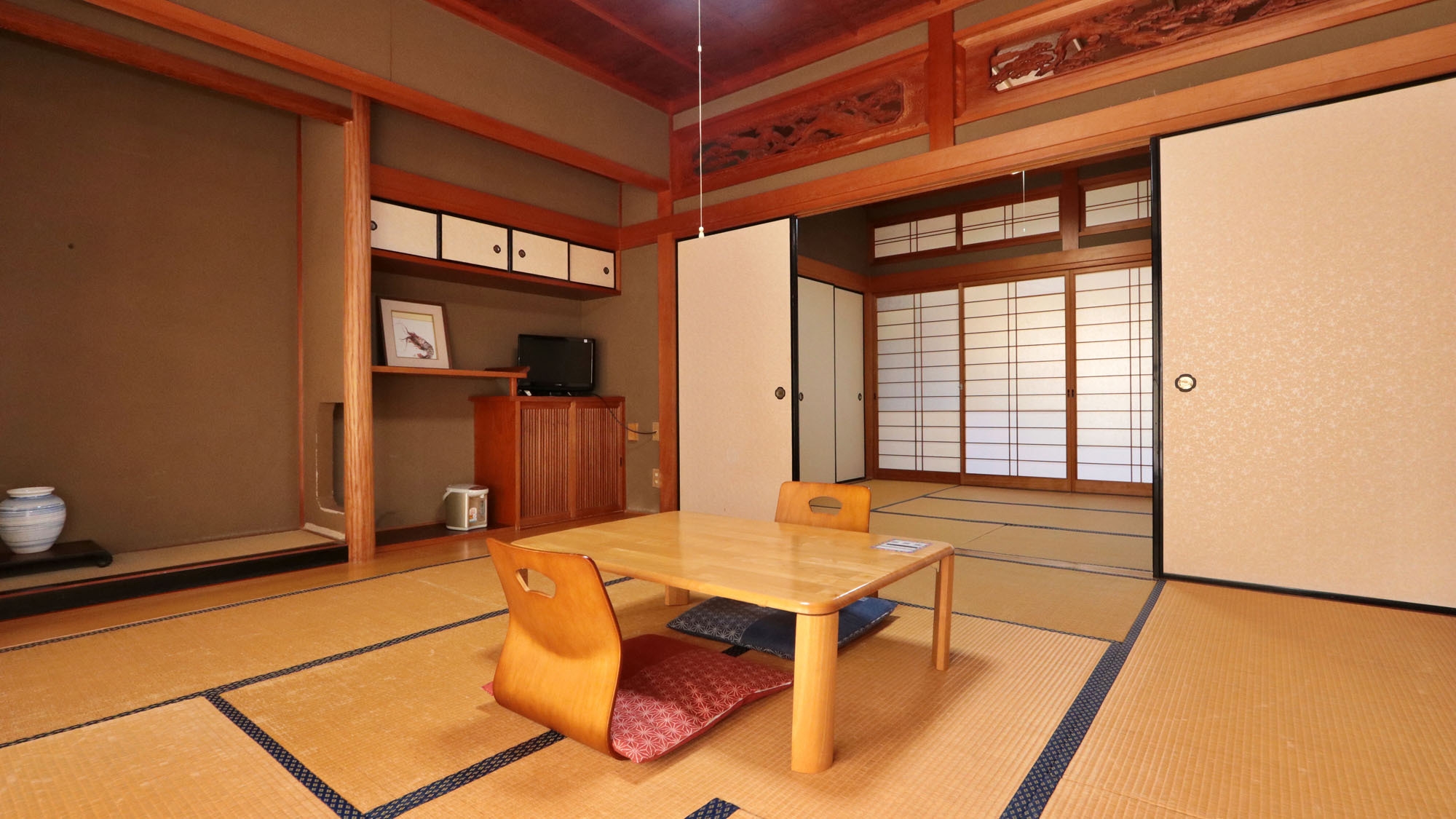 二間続きの純和風客室。人数に合わせて6畳×二間もしくは6畳+8畳のお部屋となります。カップル・御夫婦はもちろん、ファミリーやグループにオススメのお部屋です。
