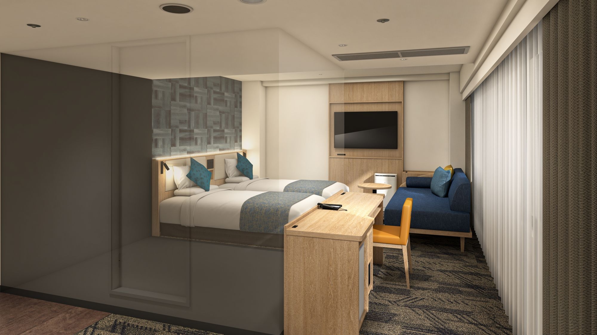 2026年リニューアル! 広さ:20.91〜22.45平米 ベッド幅:120cm×2台 4Kスマートテレビ/加湿機能付空気清浄機付き
