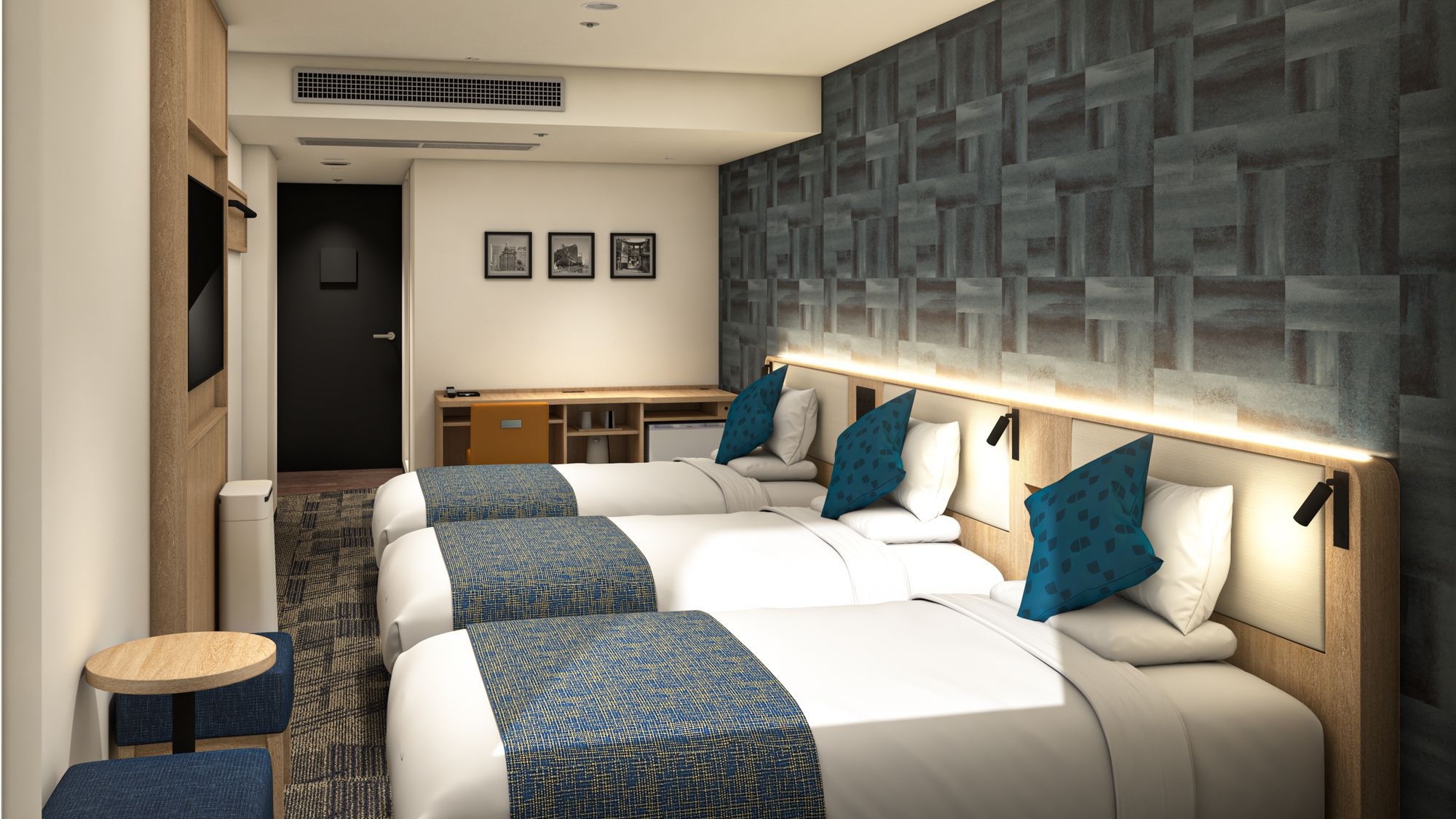 2026年リニューアル! 広さ:23.89〜25.92平米 ベッド幅:120cm×3台 4Kスマートテレビ/加湿機能付空気清浄機付き