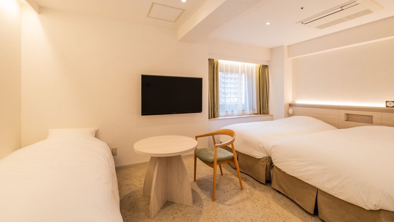 お部屋の広さ:約30平米 ベッド:セミダブル120cm×200cm(2台) 追加ベッド:90cm×200cm(1台) 大人定員:最大3名 添寝定員:最大3名