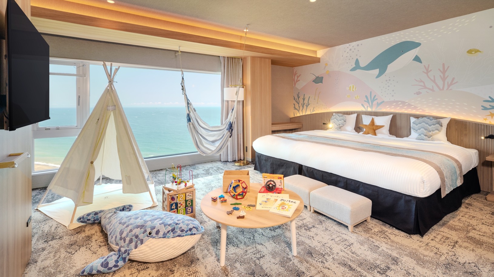 愛犬に優しい防音や床の仕上げを施したオーシャンビューの客室で