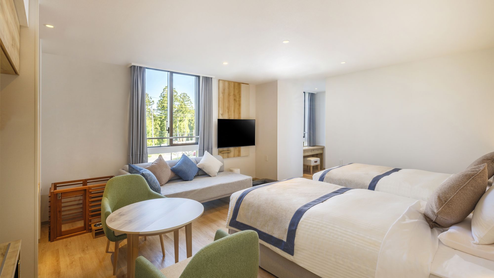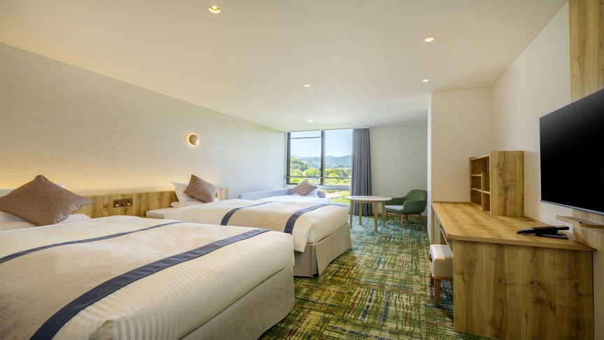 2025年4月リニューアル!フラットな室内と幅広ドアで車椅子でも楽々ご利用いただけるアクセシブルツインルームです。