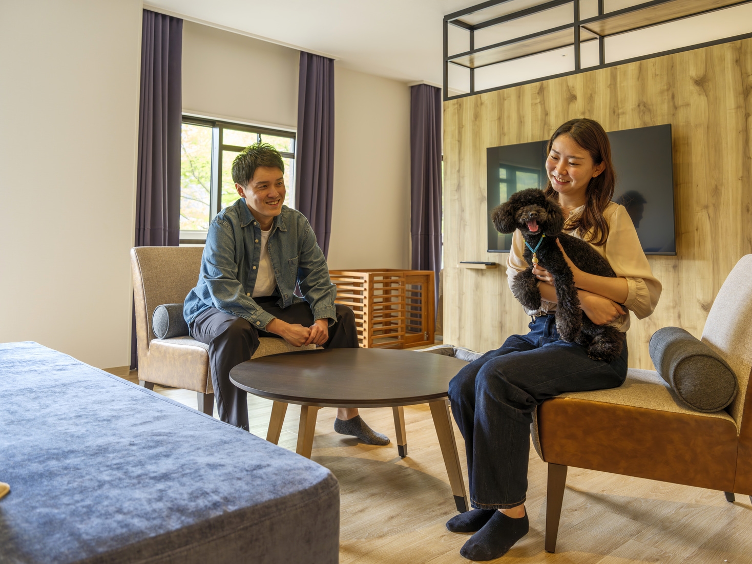 25年4月ペット可ルーム誕生!客室内にプライベートサウナ完備。ペット同伴者専用エントランスもご用意!ペットと泊まれる宿ならではのホテルステイをわんちゃんと満喫!