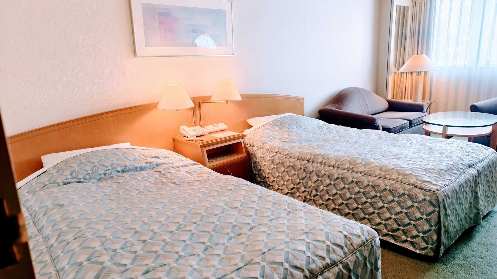 ツイン25平米・ベット幅110センチx2/シャワートイレ有/インターネット接続無料