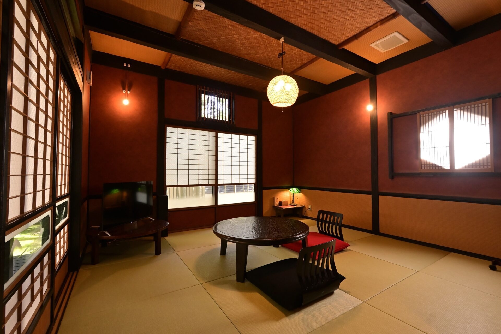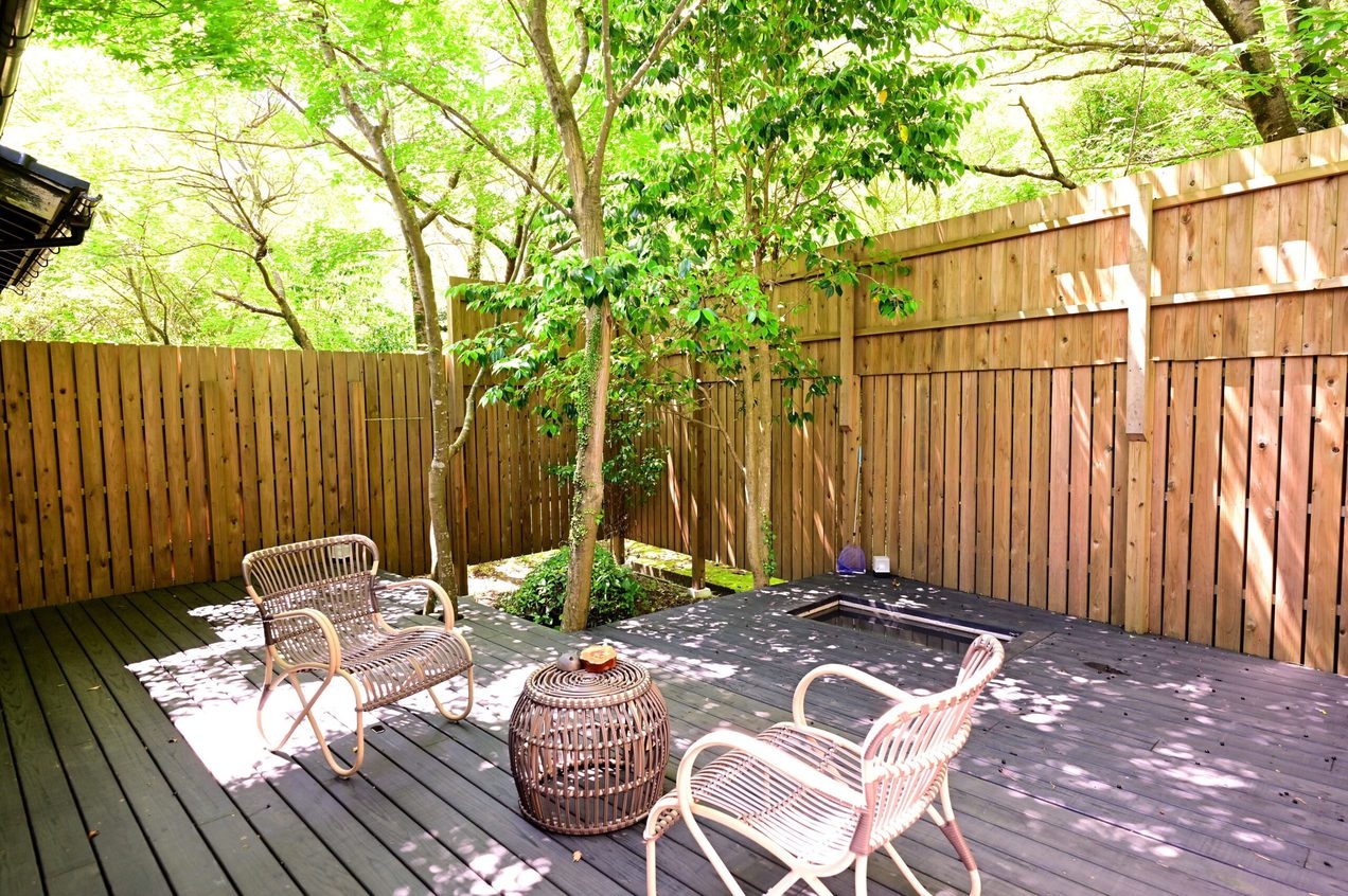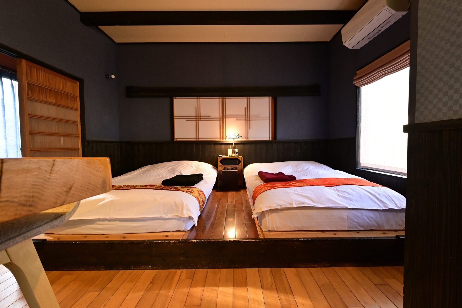 和室(8畳)とベッドルーム2間を備えた<70平米>の離れです。 【お風呂 1.切り石内湯 2.水風呂 3.岩露天風呂 4.サウナ室 】 【お食事〜専用個室にて】