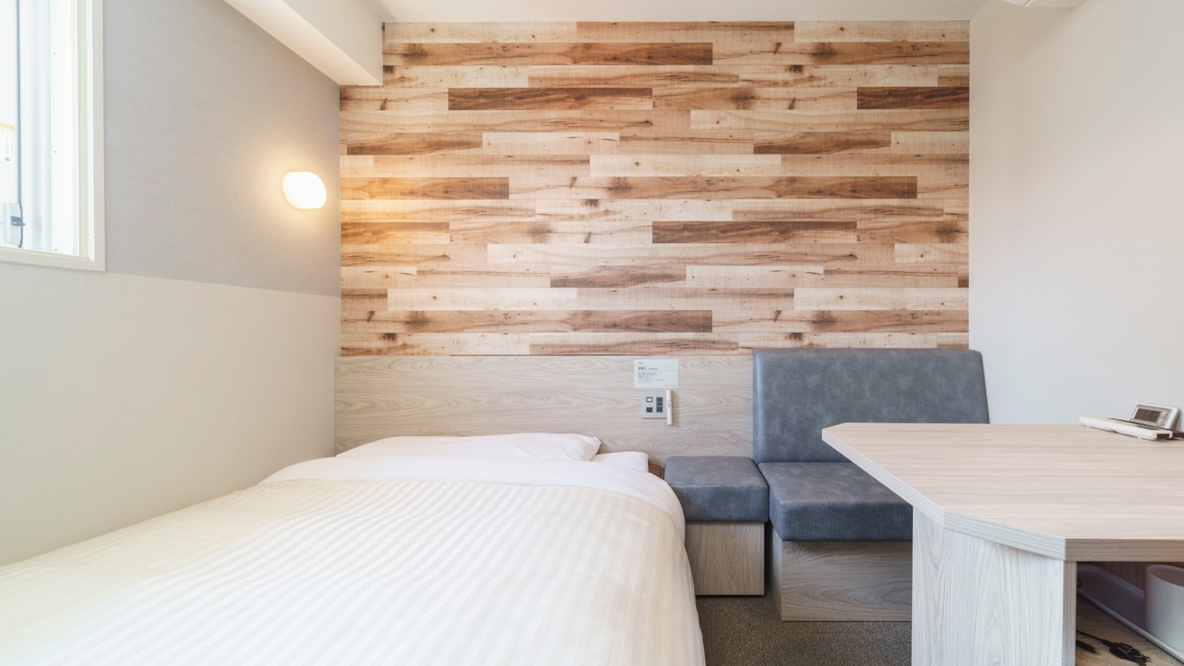 150cm幅のワイドベッド+広々デスクの【エクストラルーム】です。 広々デスクで仕事や作業がしやすいお部屋です。
