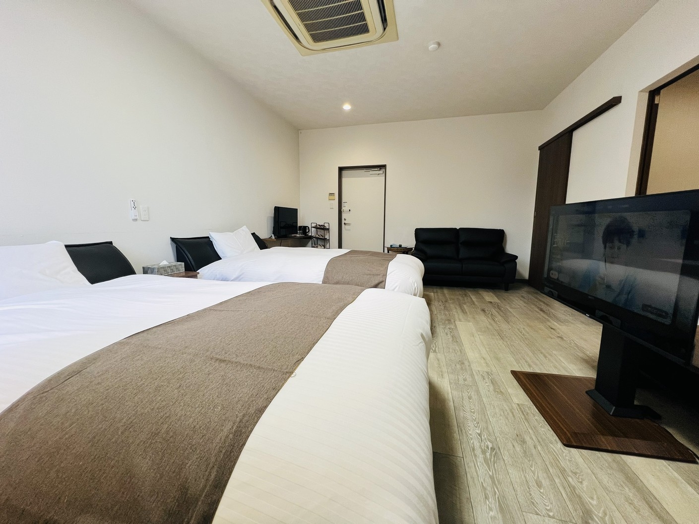 テレビ 冷暖房 冷蔵庫 無料Wifi完備。2泊以上の連泊をいただく場合、ご宿泊中のシーツ交換・清掃サービスは行っておりません。地上波放送×Netflix見放題
