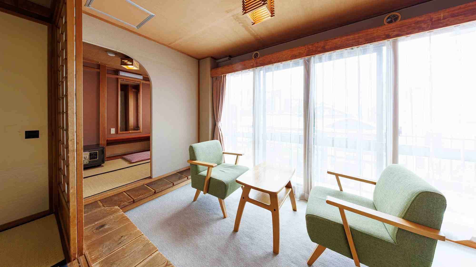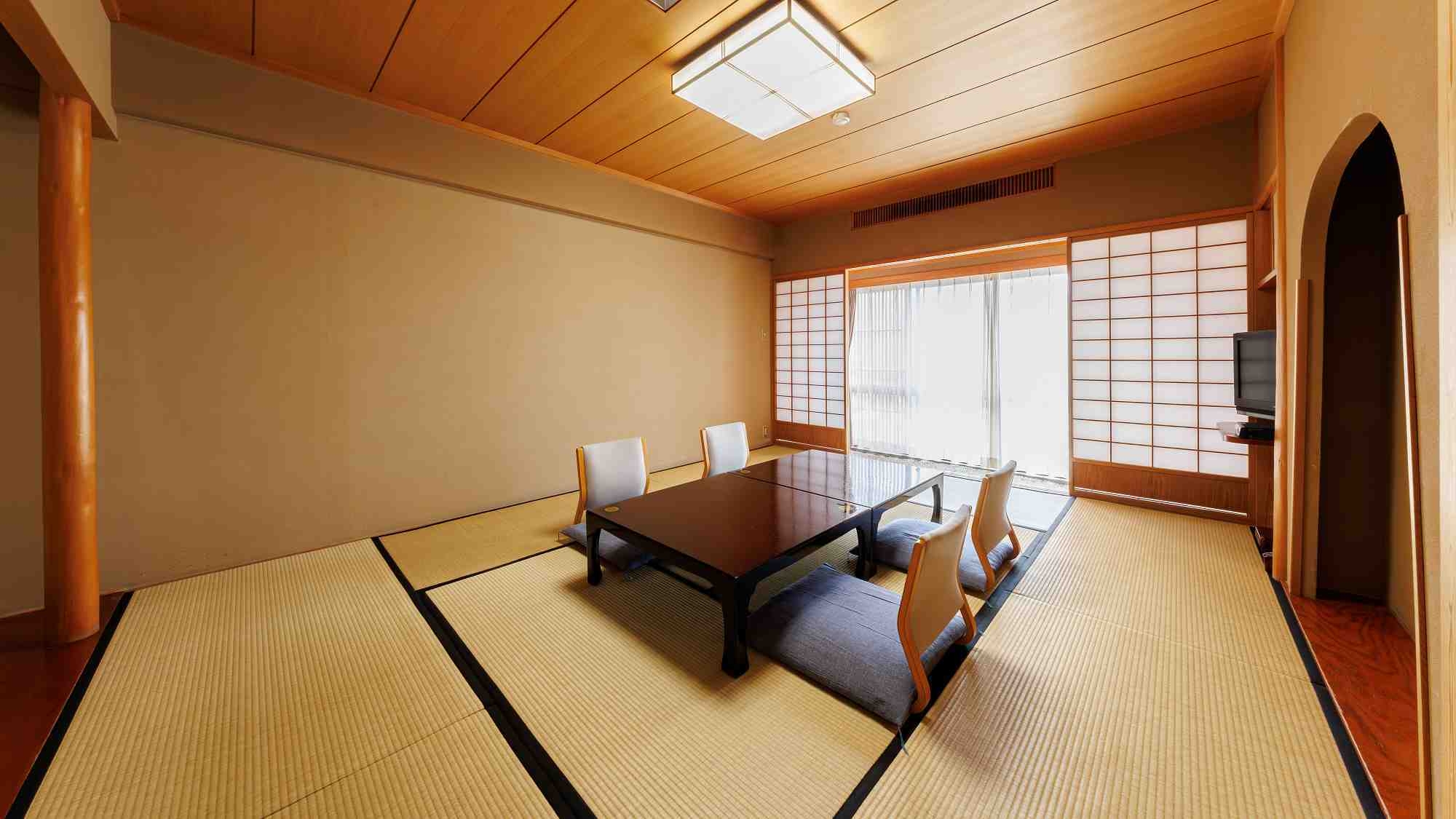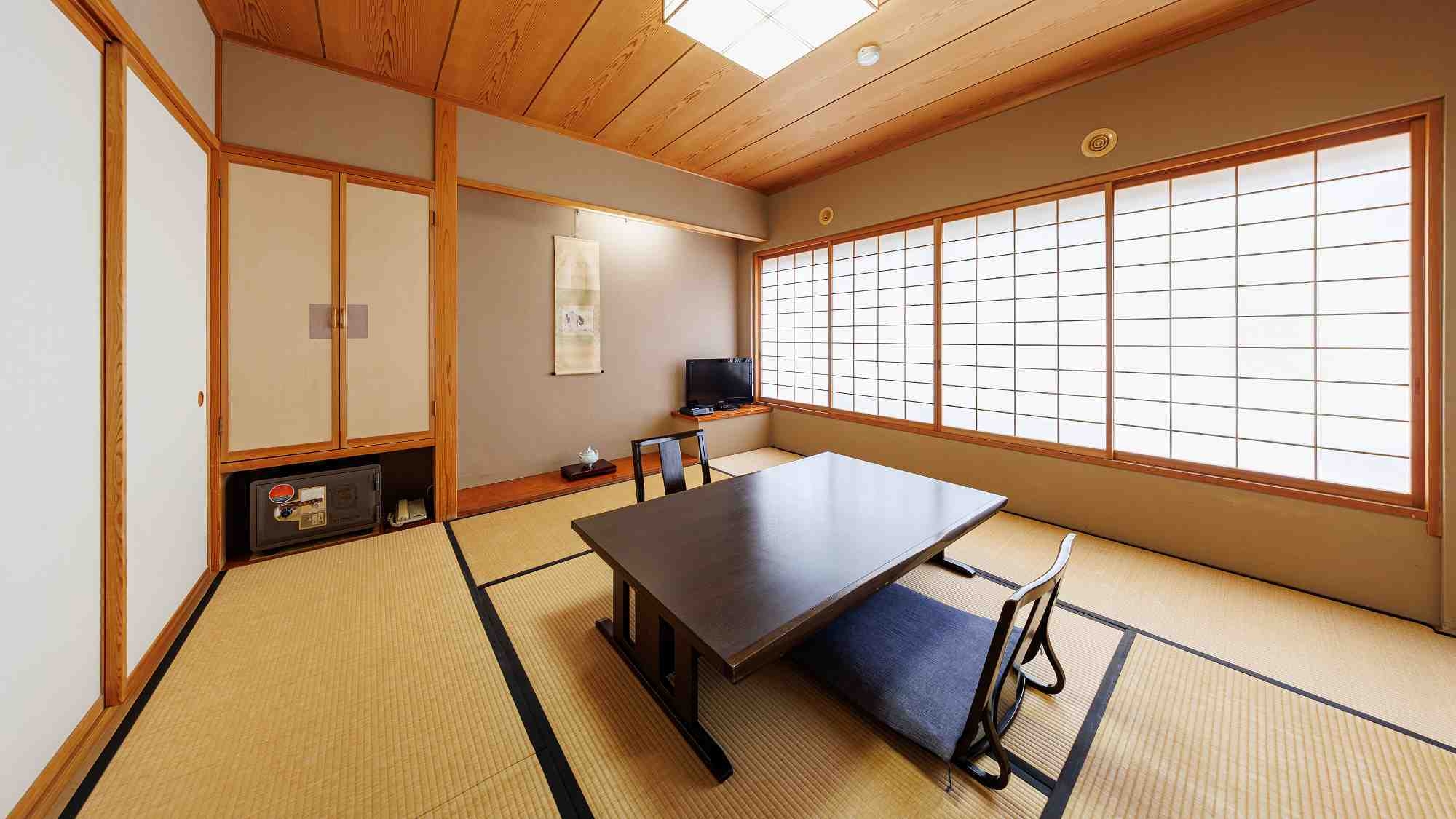 窓際に広縁を備えた、和室10畳の標準的な純和室 ■バス・シャワートイレ付 ■天然温泉を給湯 ■Wi-Fi ■加湿空気清浄機