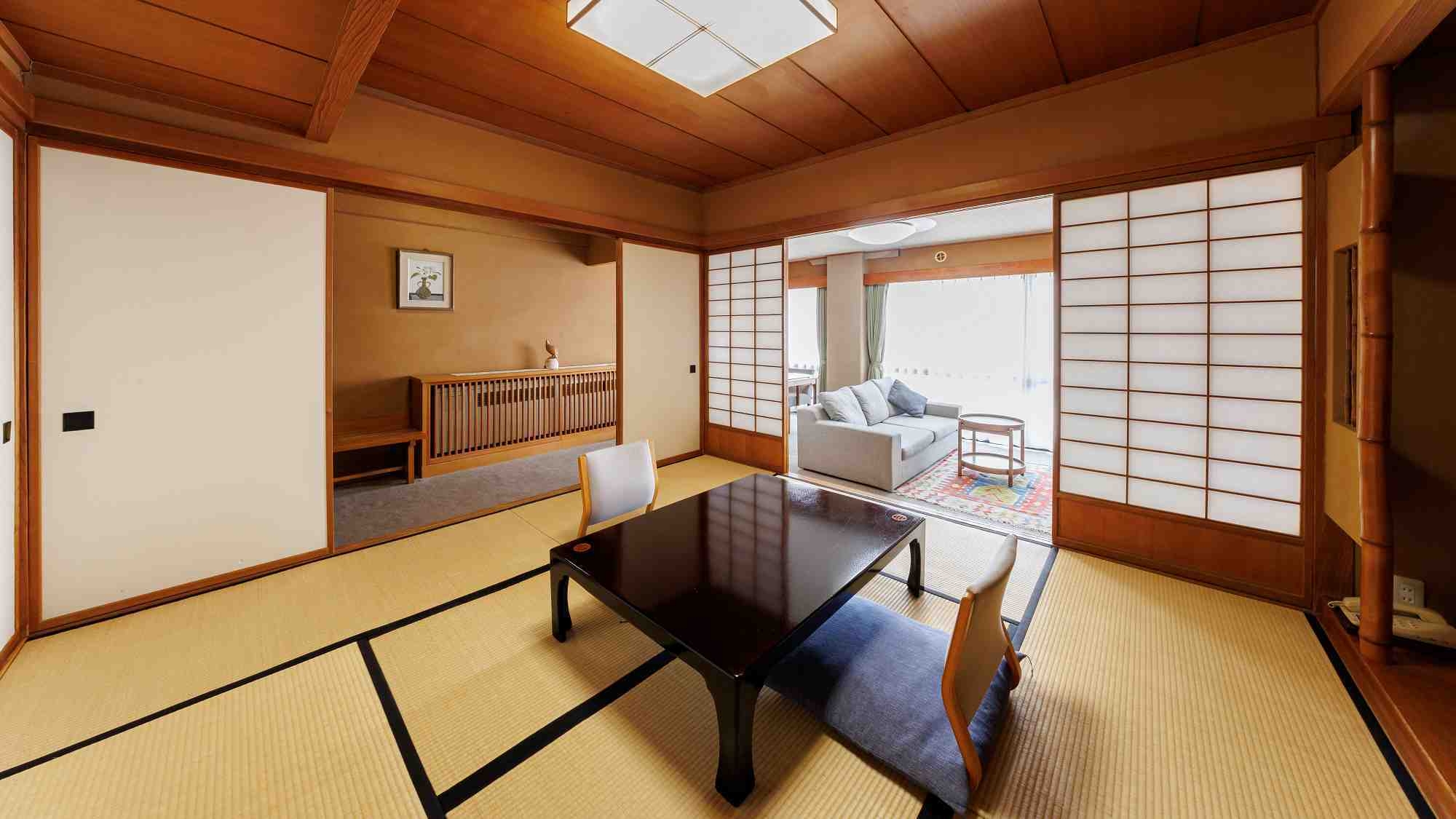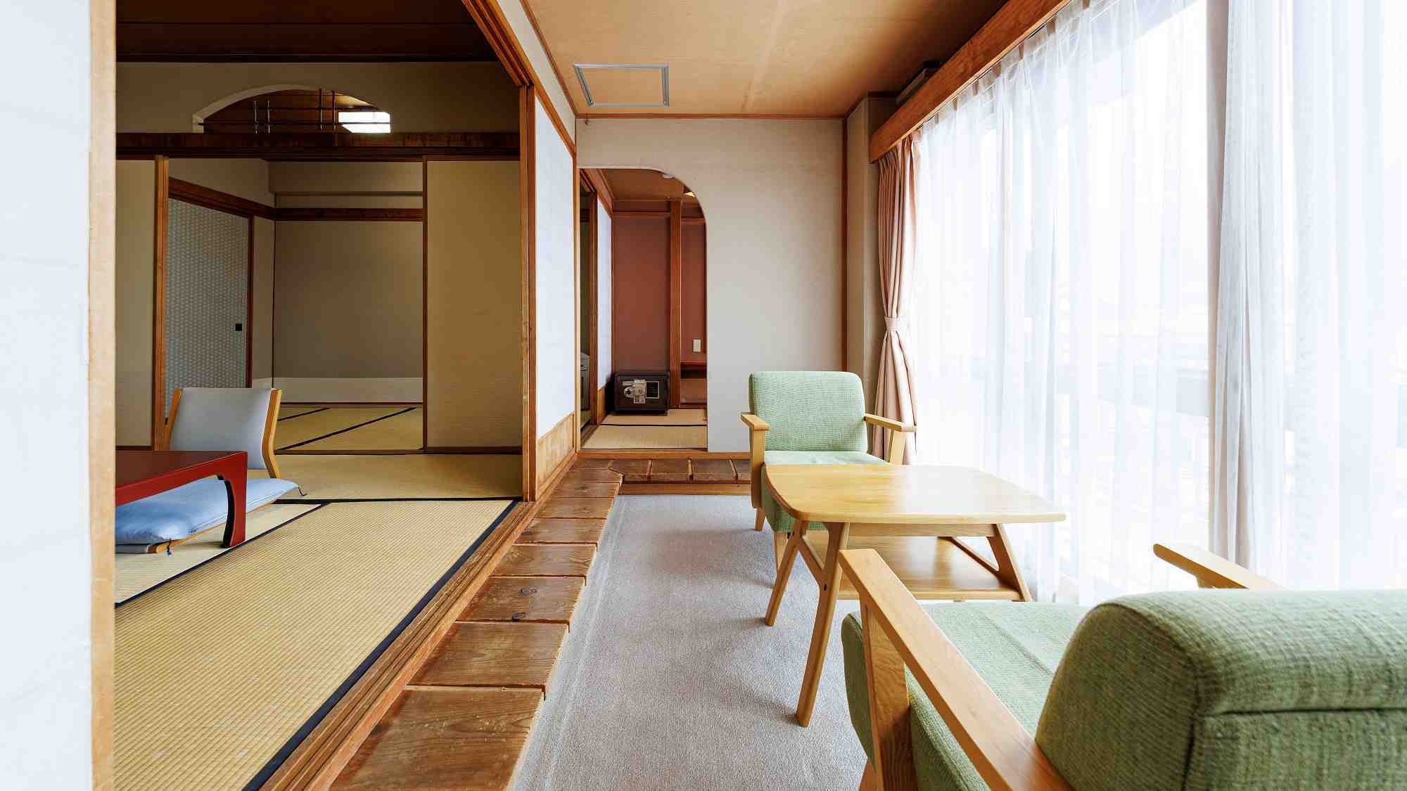 ご家族やグループでのご利用に最適のお部屋。和室10畳と和室7畳はふすまで仕切る事が出来ます ■バス・シャワートイレ付■Wi-Fi対応■加湿機能付空気清浄機