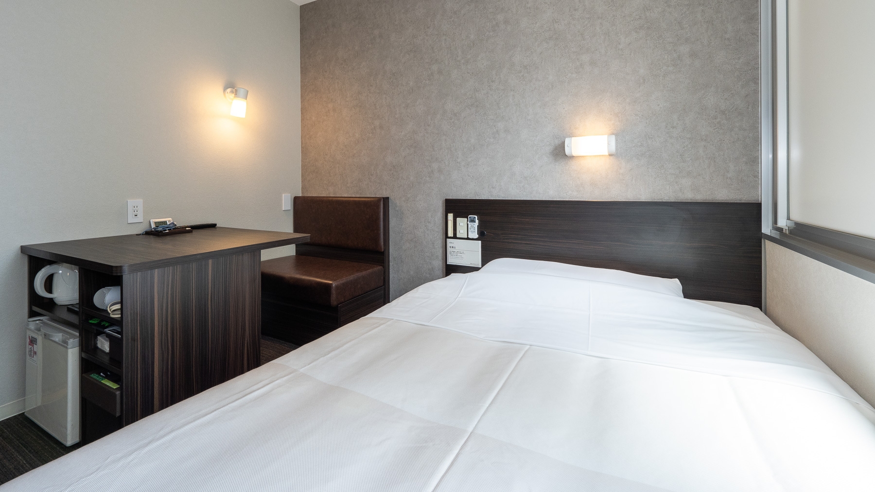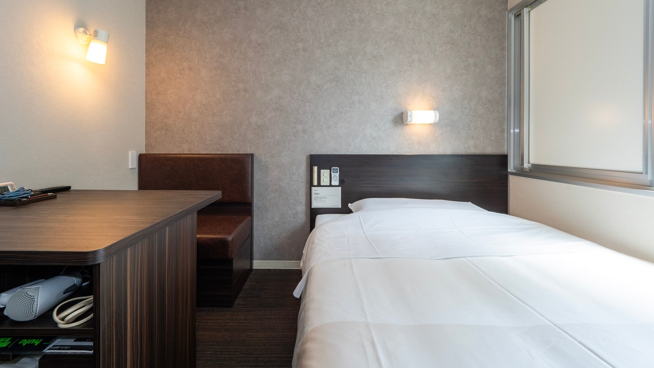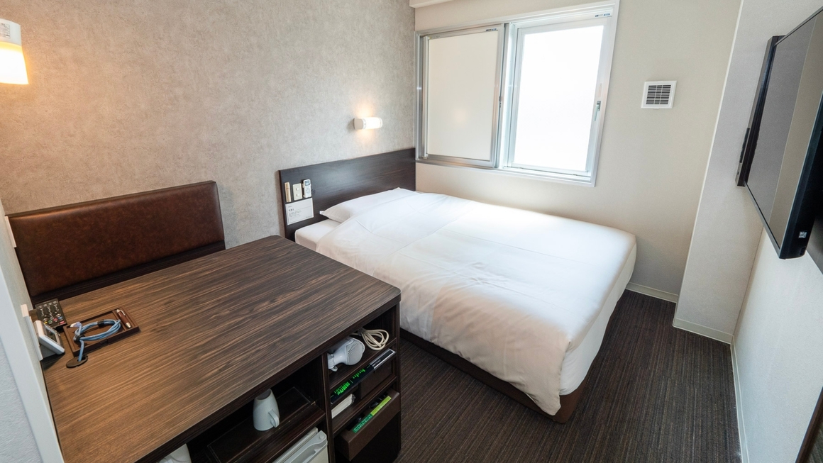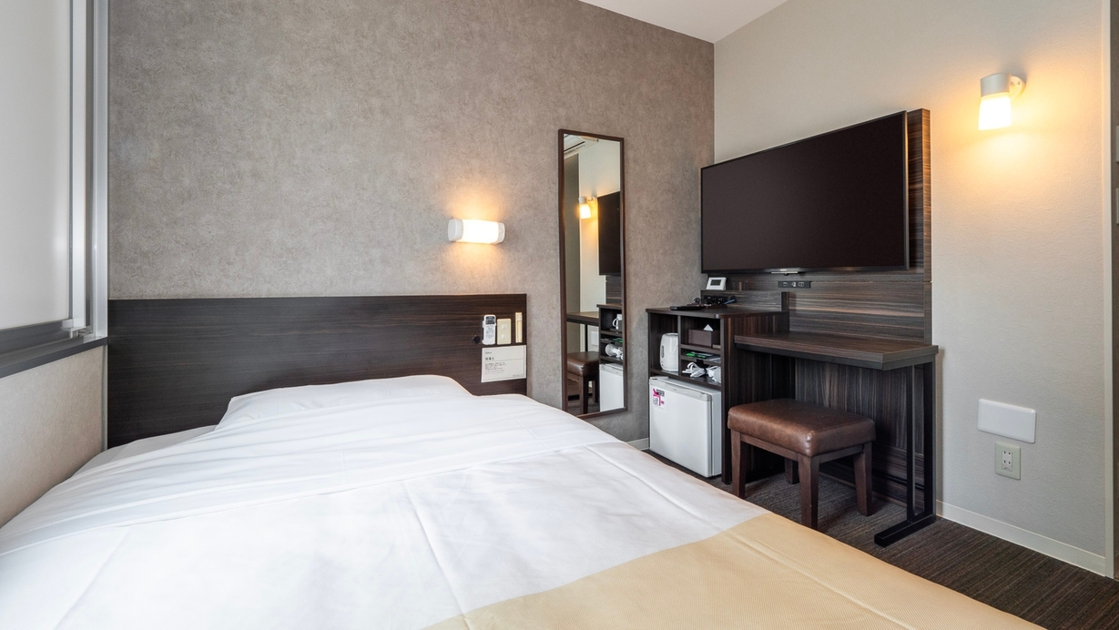 スーパーホテルで最もスタンダードなお部屋である【スタンダードルーム】です。 150cm幅のダブルサイズのワイドベッドでぐっすりお休み下さい。