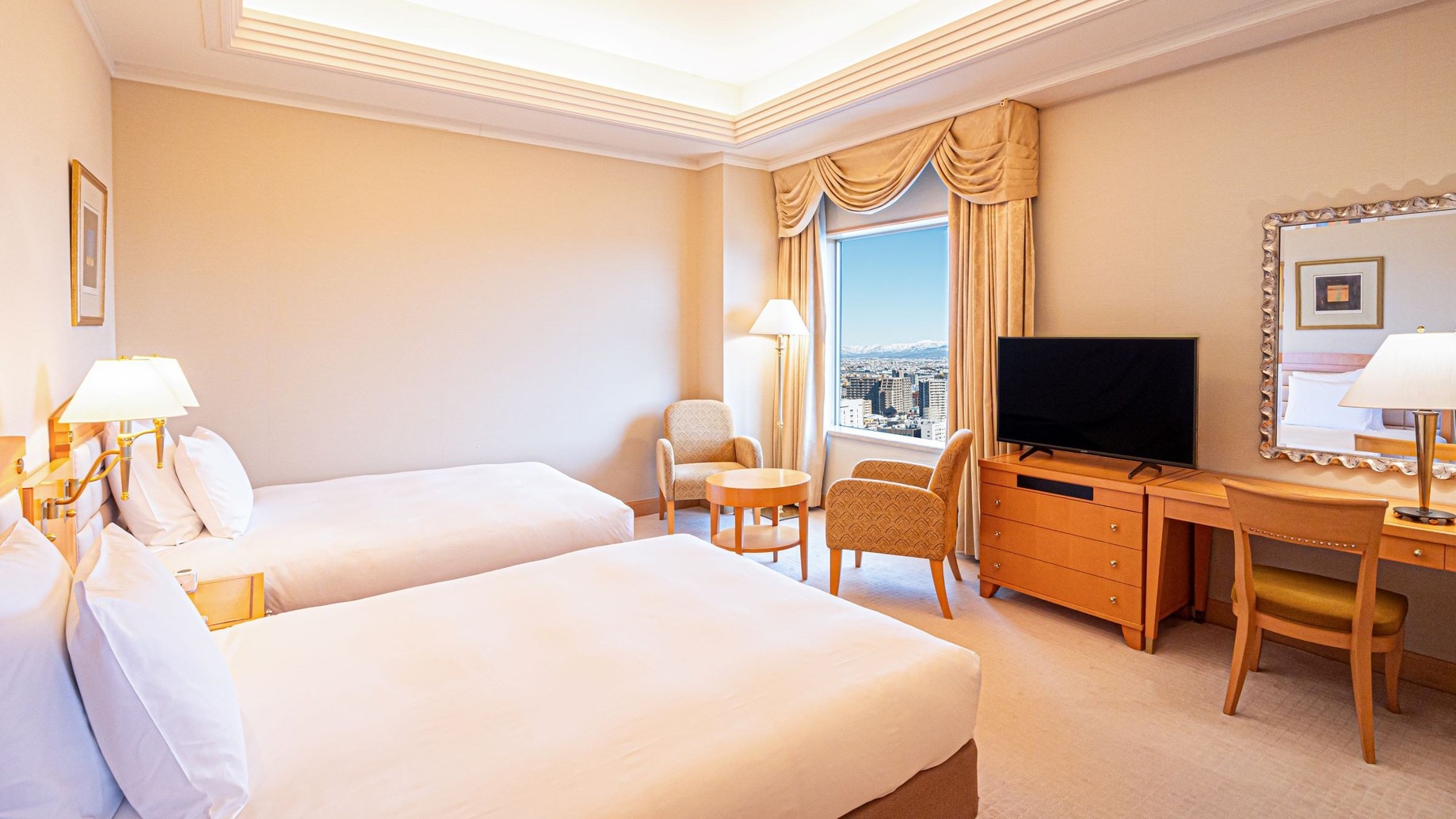 広さ:32平米 ベッド幅:1,200センチ・禁煙ルーム 16階以上のお部屋から、富山の景色をお楽しみください