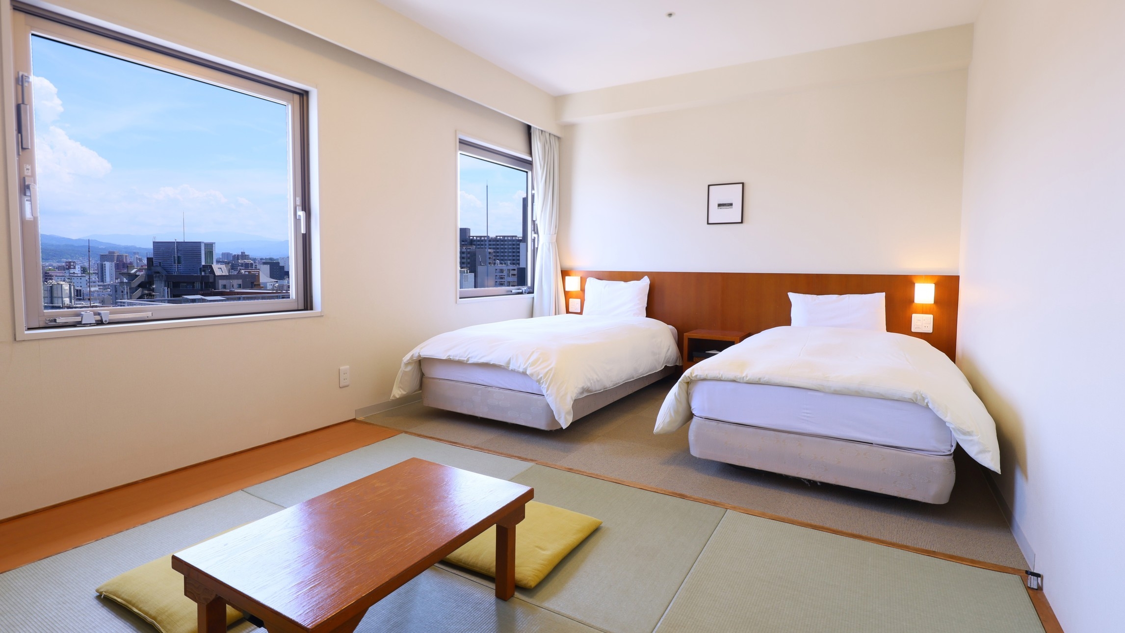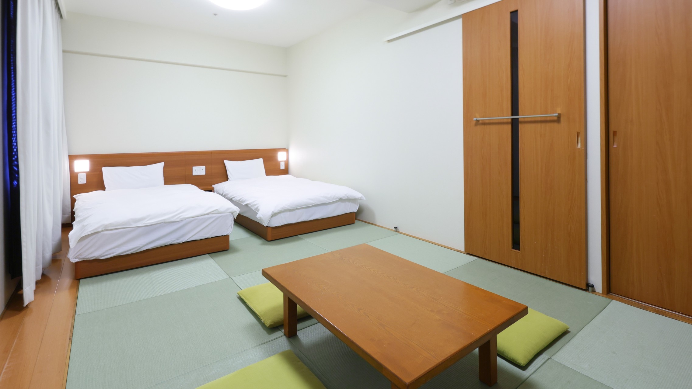 ■シモンズベッド(1,000×1,950 2台)+畳スペース■広さ25.5平米■シャワーブース付・温水洗浄機付トイレ■32型テレビ■Wi-Fi完備