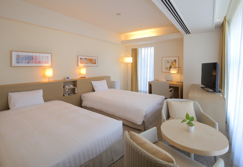 【全室禁煙】 Wi-Fi&加湿空気清浄機完備 ツインルーム(ベッド2台)にエキストラベッド1台をご用意♪