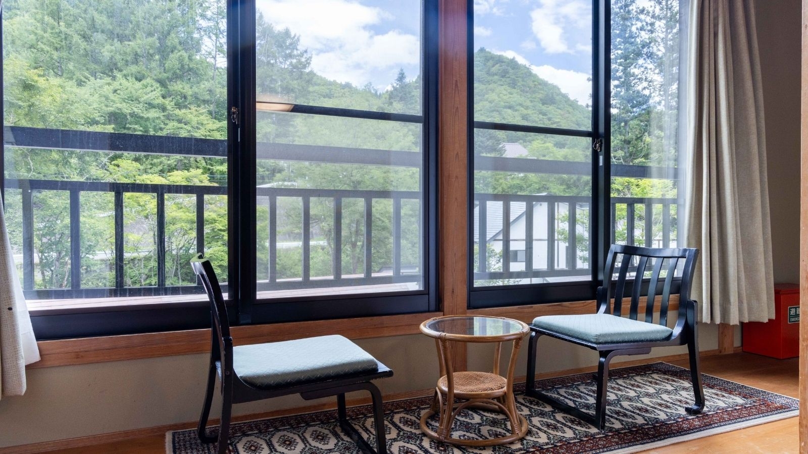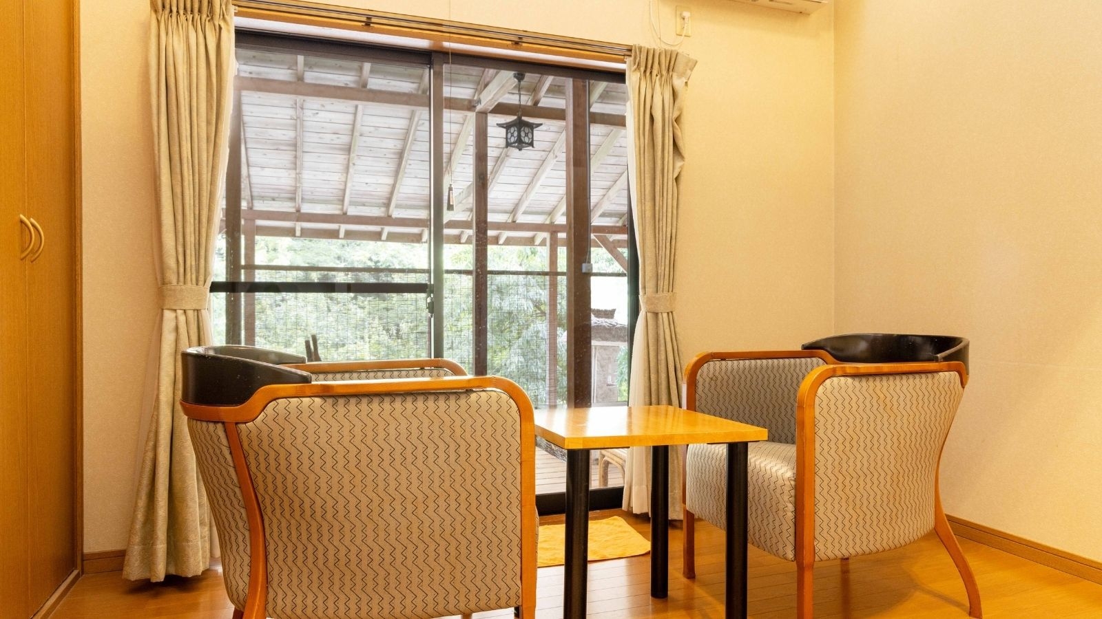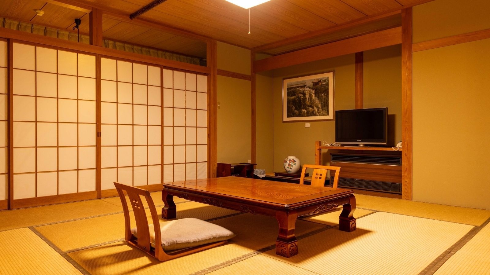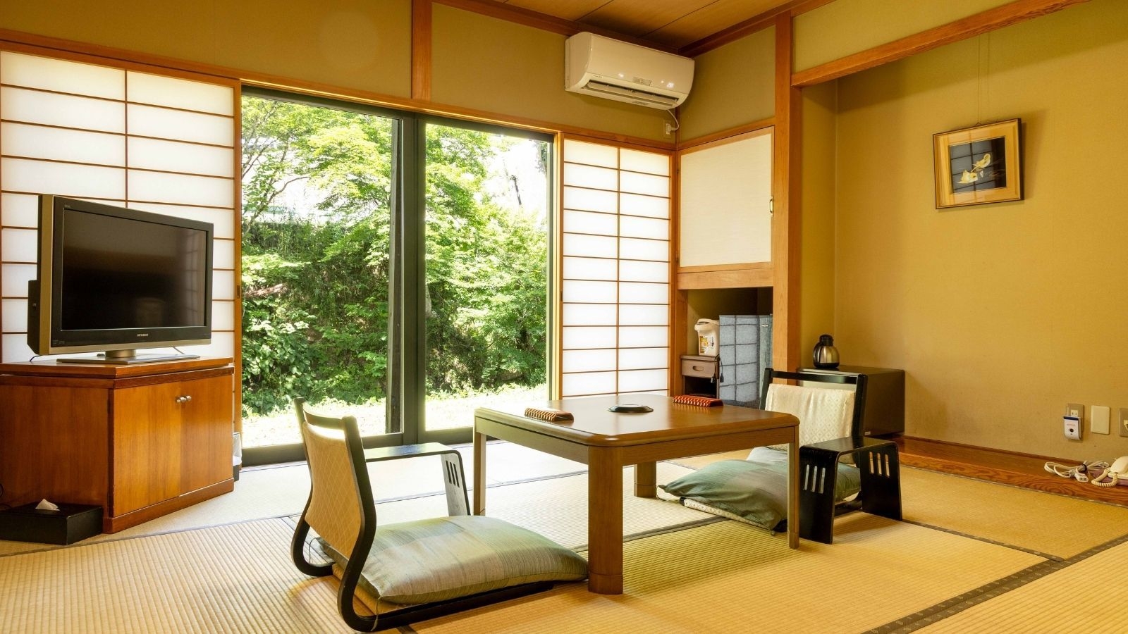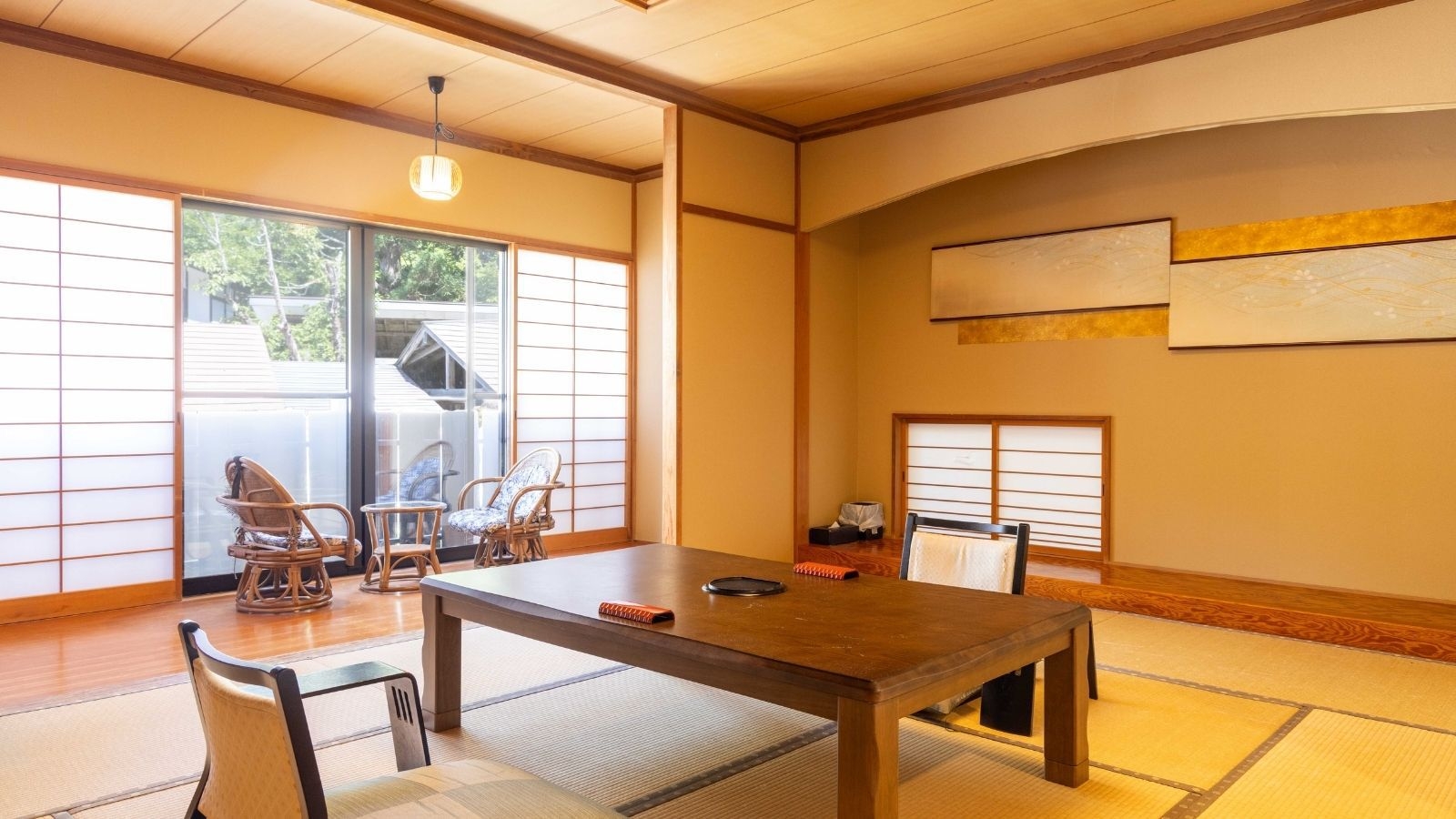 山側に位置する10〜12畳ほどの和室で床の間・広縁付きです。部屋は2階で眺めも良く、四季の素晴らしさを感じられます。