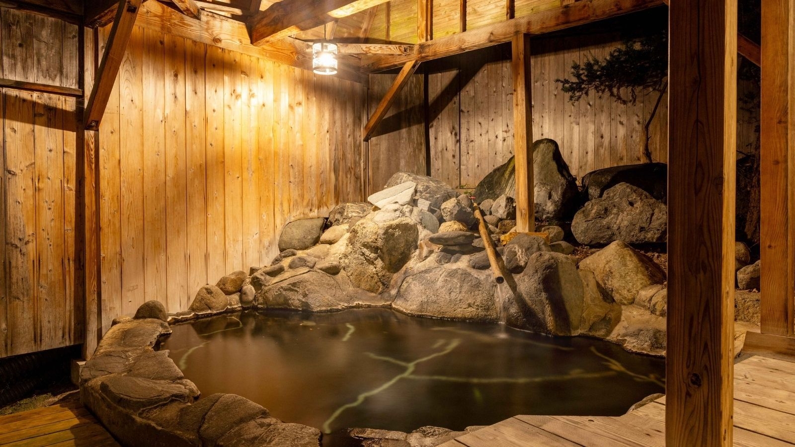 源泉掛流し18種の露天風呂を貸切で湯めぐり。