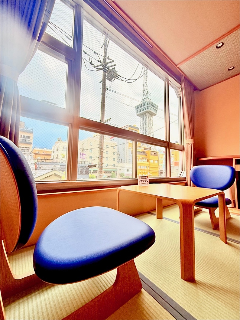 お部屋から別府タワー(街側)を望むことが出来ます。畳の感触が心地よい和室で、 ごろ〜んと横になって寛いでいただけます。