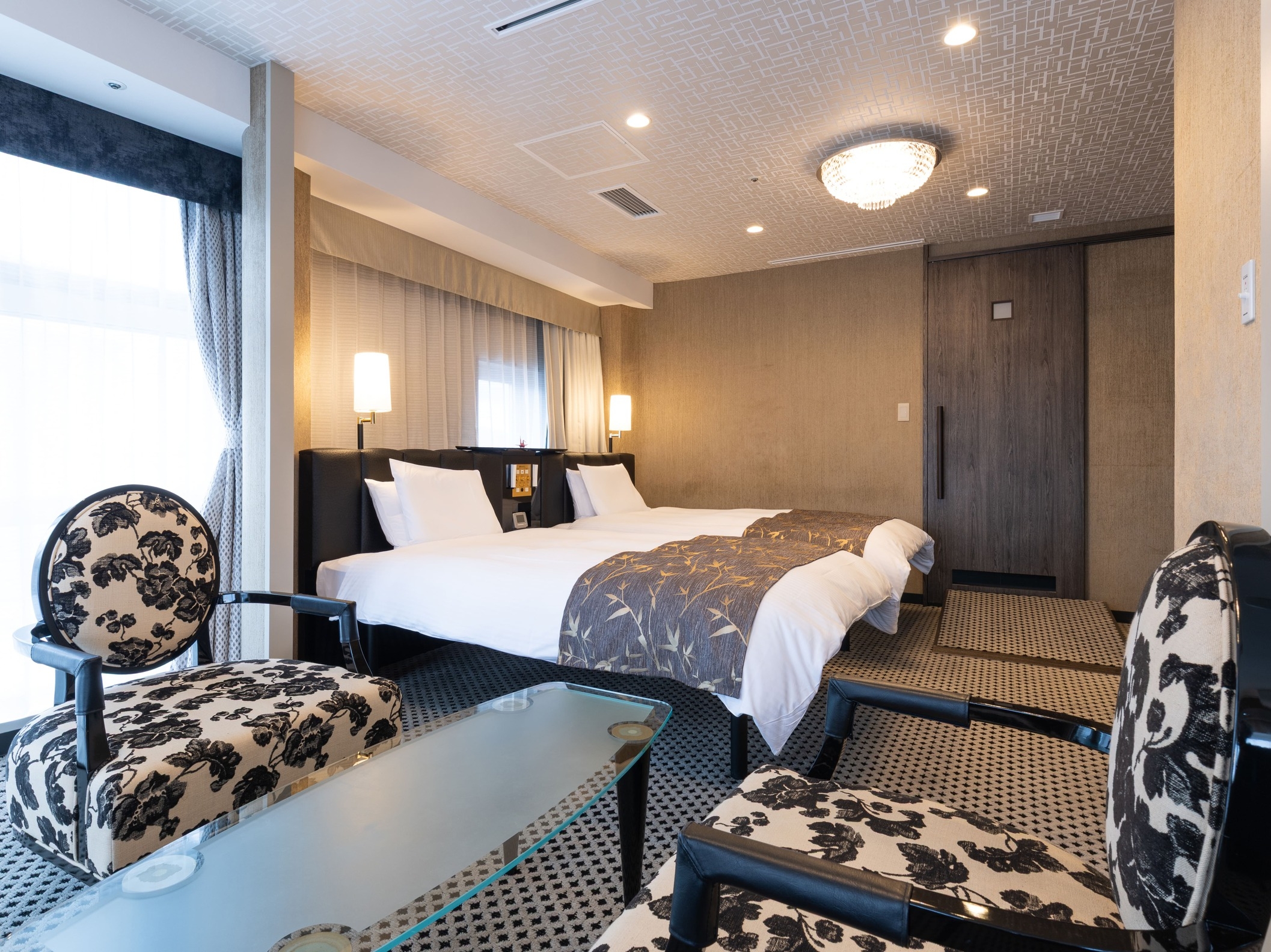 広さ43平米/ベッド幅120cm×2台/40型液晶テレビ/全室Wi-Fi無料/温水洗浄機付トイレ完備