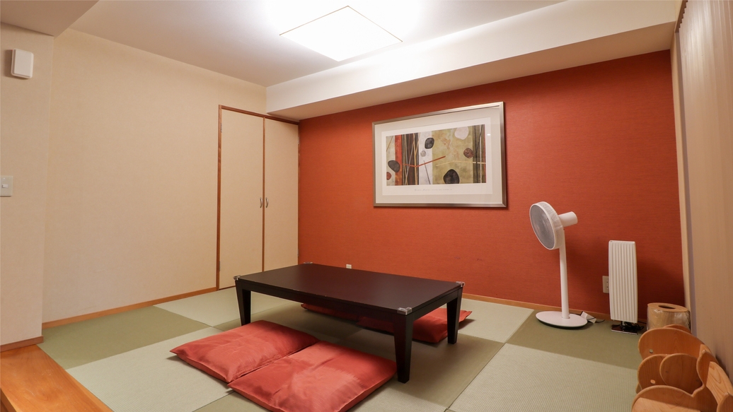和室にローベッドを設置した新しいタイプのお部屋(バス・トイレ別・全室洗浄機付トイレ完備。空冷蔵庫有。客室への持ち込みOK。館内に温泉大浴場(露天風呂)有。)