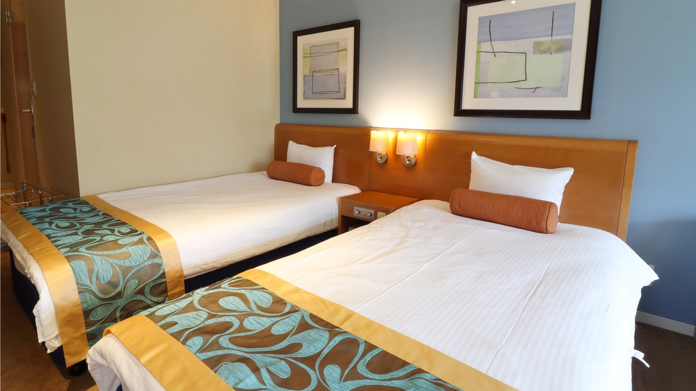 洋室(ツインベッド+エキストラベッド)のスペースにバス、トイレ(洗浄機付)を完備したお部屋。※3、4名様でご利用の場合には、エキストラベッド利用。