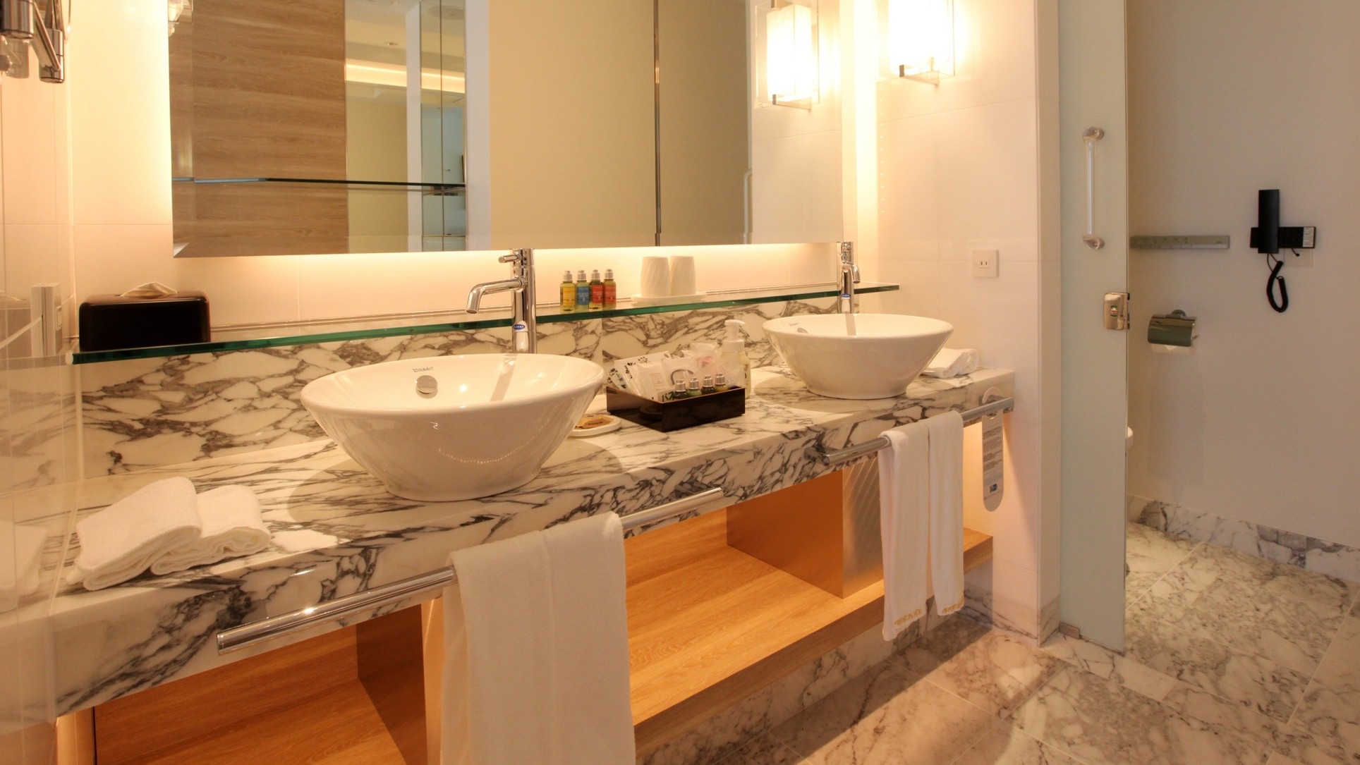 リビングダイニング、バスルーム、独立した洗面台など、贅沢な広さの2ベッドルームスイート。