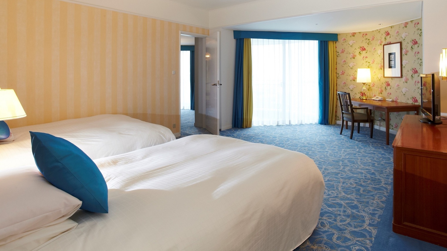【南館サウスリゾートフロア】全室バルコニー付きの南仏リゾートムード溢れるお部屋。ベッド幅120cm、広々38.5平米、Wi-Fi接続無料。