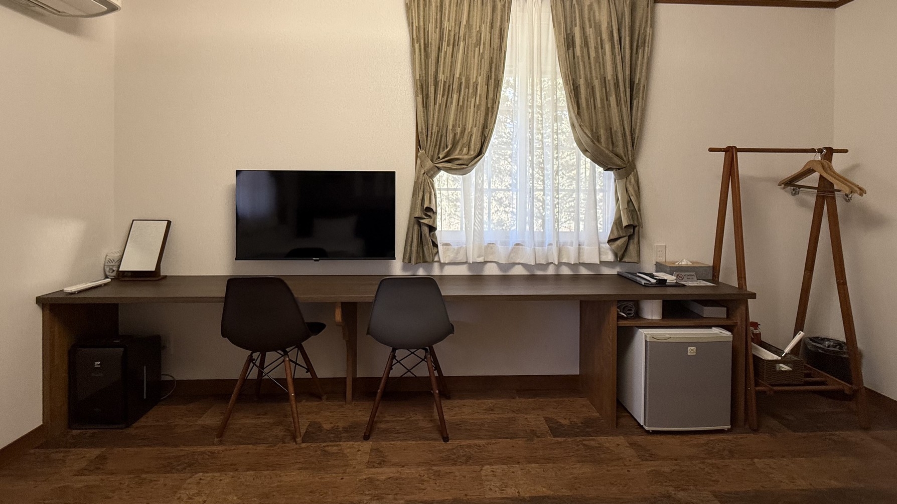 客室から富士山が見える(秋〜春)。40インチスマートTV設置。2025年3月リフォーム済。