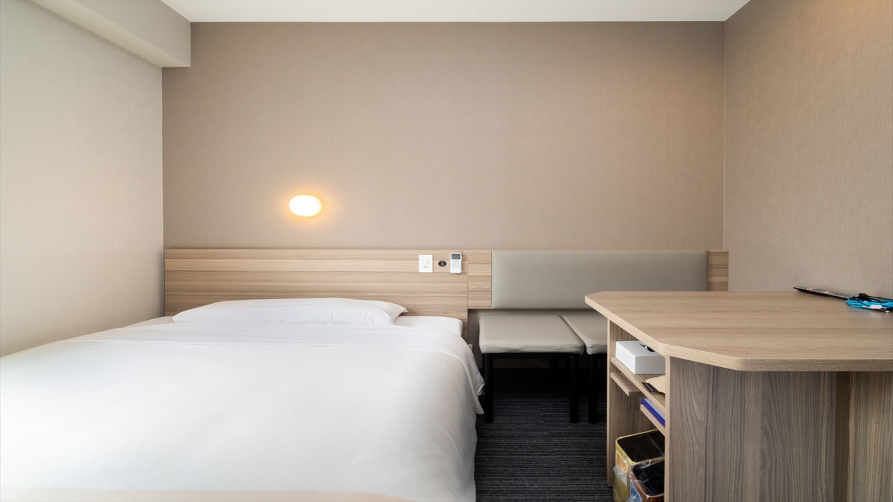 スーパーホテルで最もスタンダードなお部屋である【スタンダードルーム】です。 150cm幅のダブルサイズのワイドベッドでぐっすりお休み下さい。