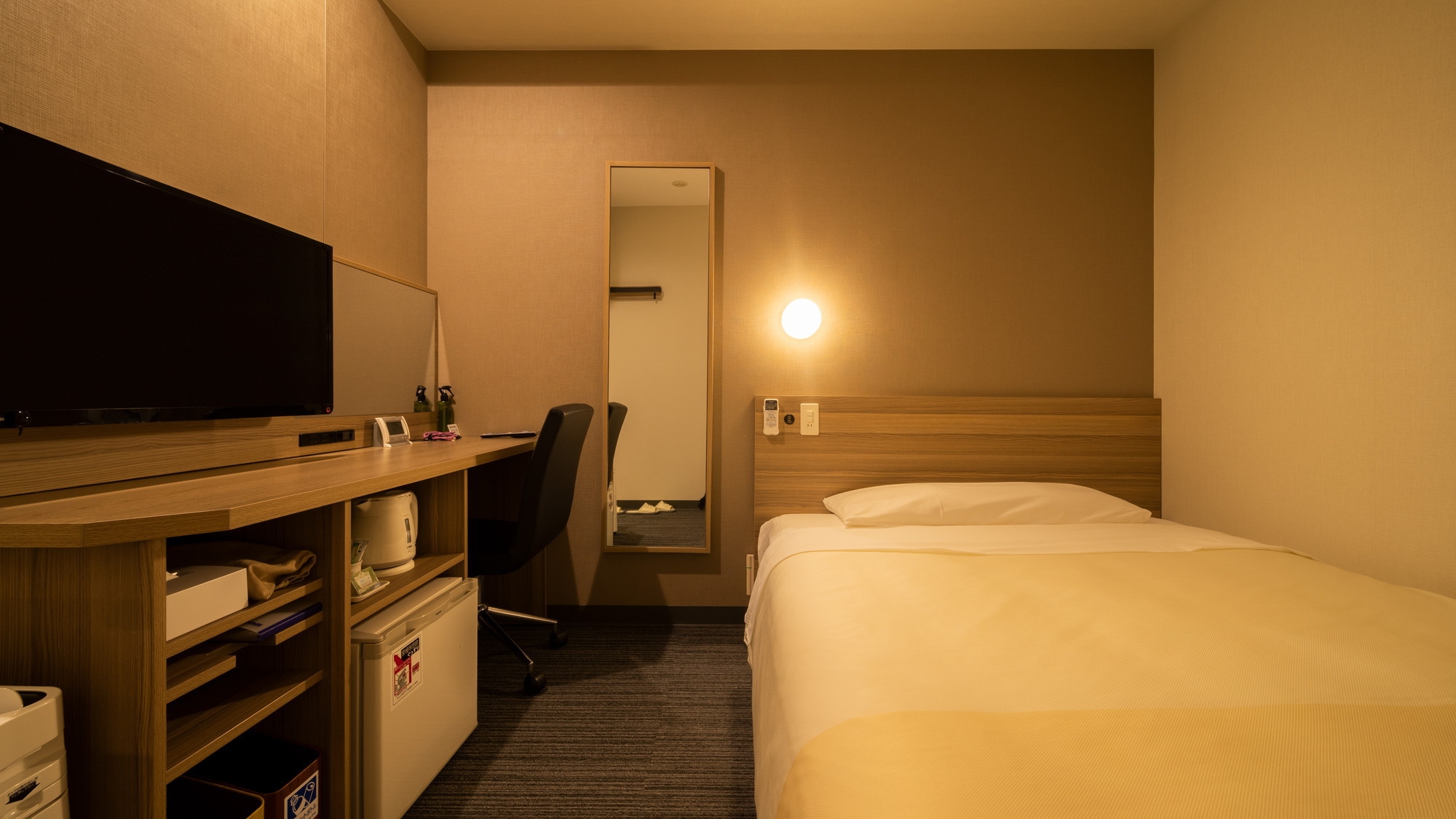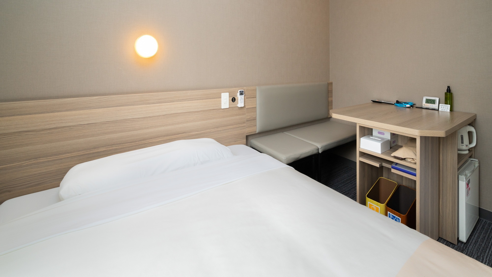 150cm幅のワイドベッド+広々デスクの【エクストラルーム】です。 広々デスクで仕事や作業がしやすいお部屋です。