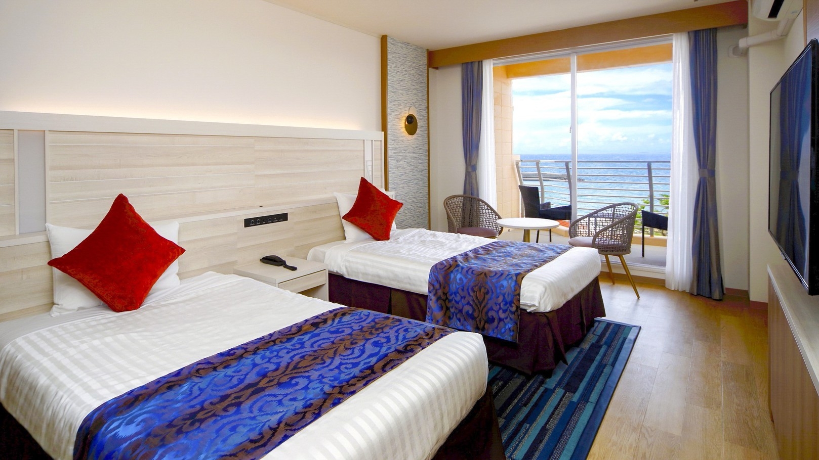 ■7階以上確約※タワーウイングへのアクセスに階段有■オーシャンビュー■ベッドサイズ110×195cm(2台)※3名利用時はエキストラベッドに寝具■バス・トイレ別