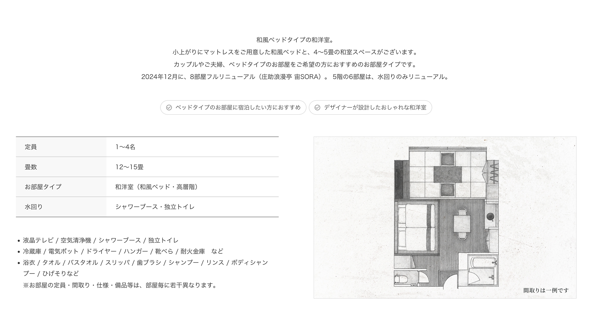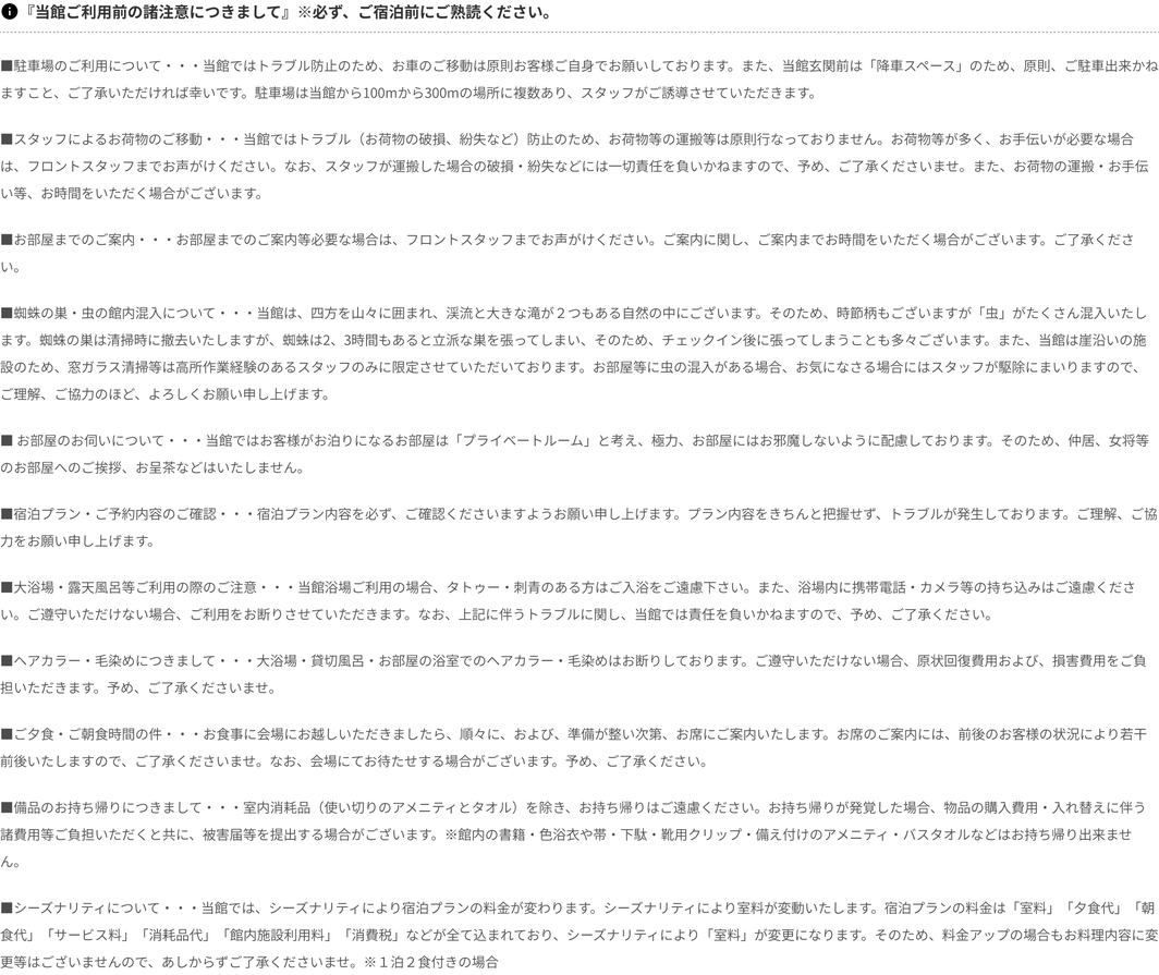 【各種同意事項・留意事項について】当館では、トラブル防止のため、各種同意事項・留意事項(公式サイトトップページに記載)にご同意いただいた上で、ご予約いただくことを推奨しております。