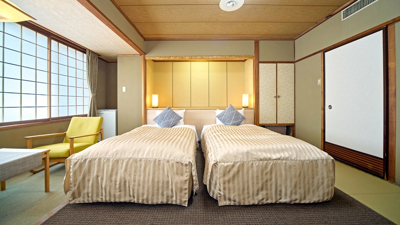 2023年9月リニューアル。客室内は柔らかな畳敷きの床が広がり、日本の美しい文化を感じる伝統とモダンな快適さが融合した、心地よいツインルームとなっております。