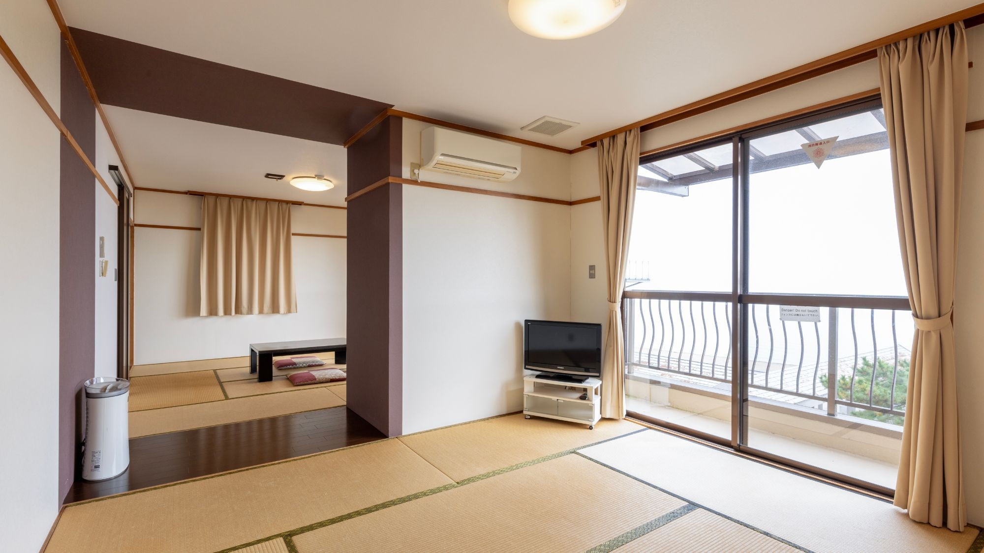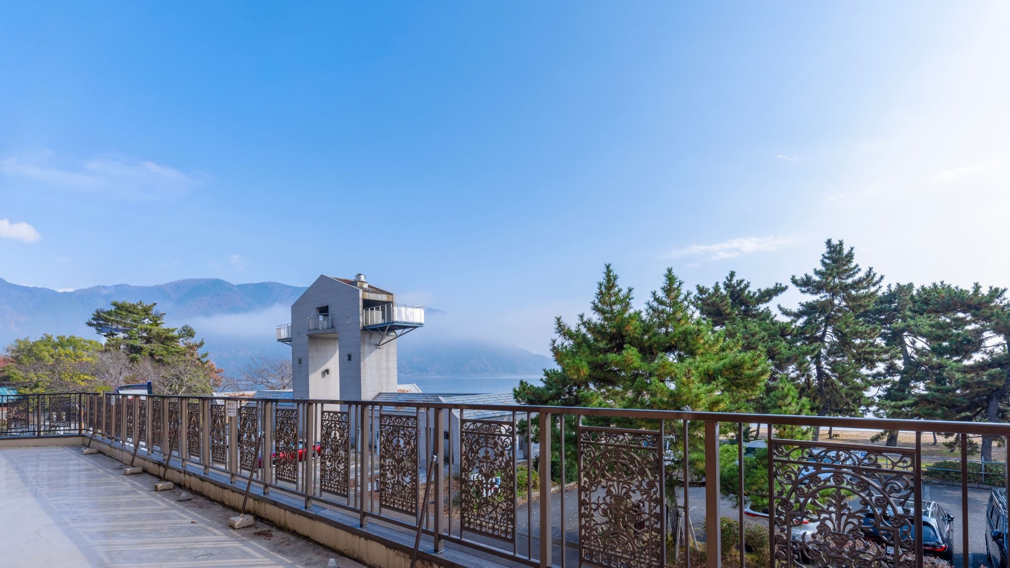 琵琶湖が一望の広いテラスが付いた和室の民宿風のお部屋。室外フロア内に専用トイレ・男女別共用浴場利用可能。