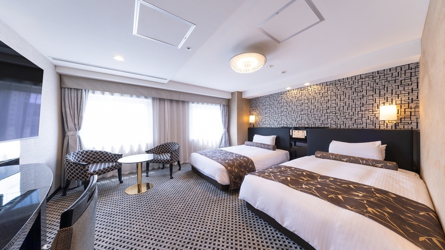 シングルベッド(105cm×195cm)が2台/オリジナルベッドCloud fit/有線LAN&Wi-Fi無料/50型液晶TV/VOD完備/洗浄機付トイレ