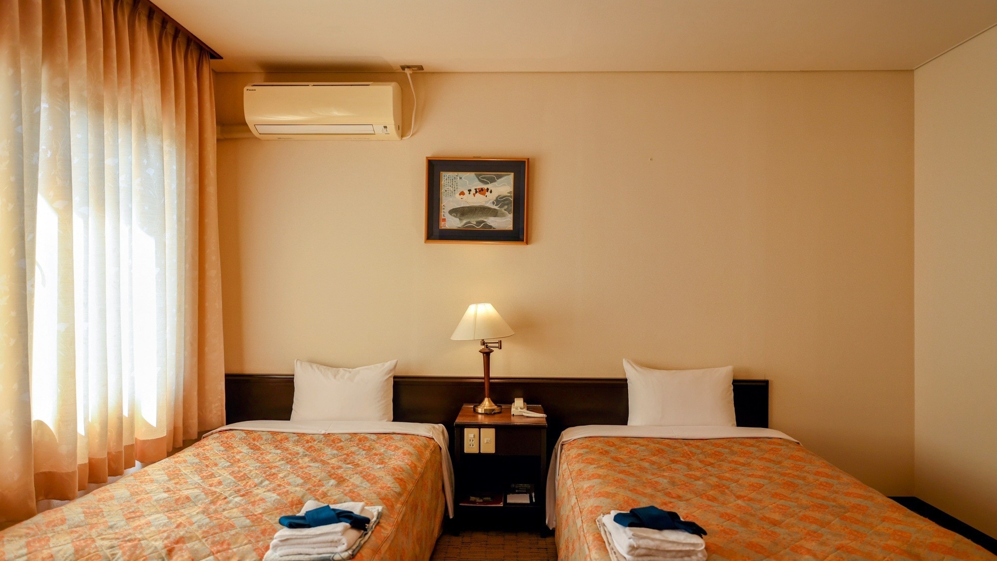 シングルベッド2台(幅110cm)と基本的な設備、アメニティを完備。シングルサイズの布団も6組あり様々な宿泊シーンに対応。