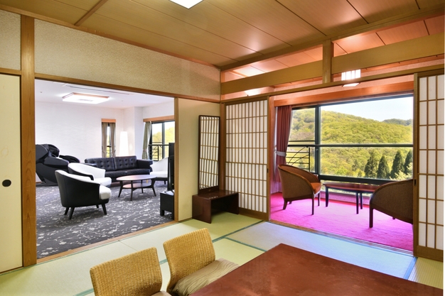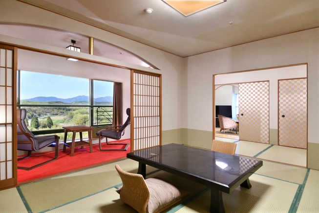 本館最上階にあり中国山脈・田園風景を望む和室とリビングがある和室タイプ「特別室‐那岐の間」