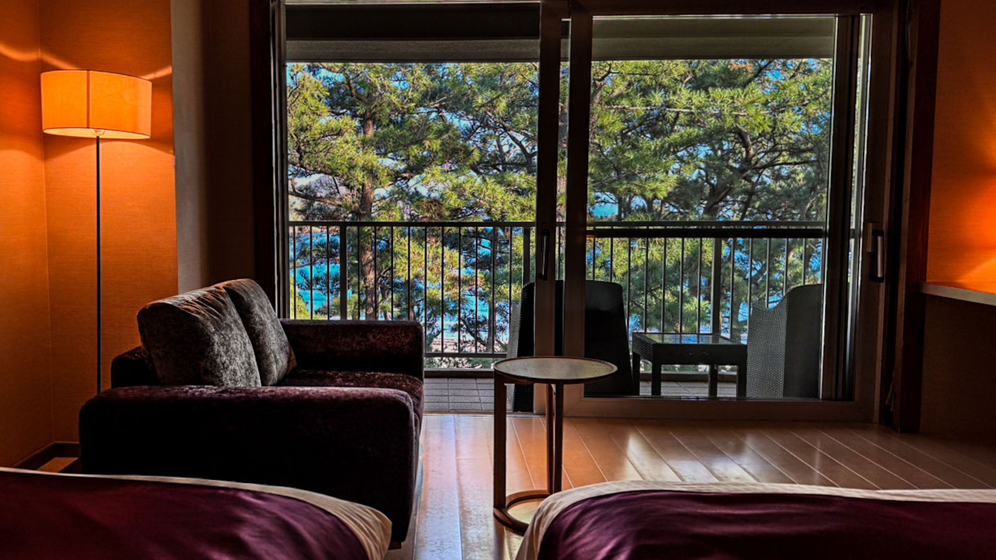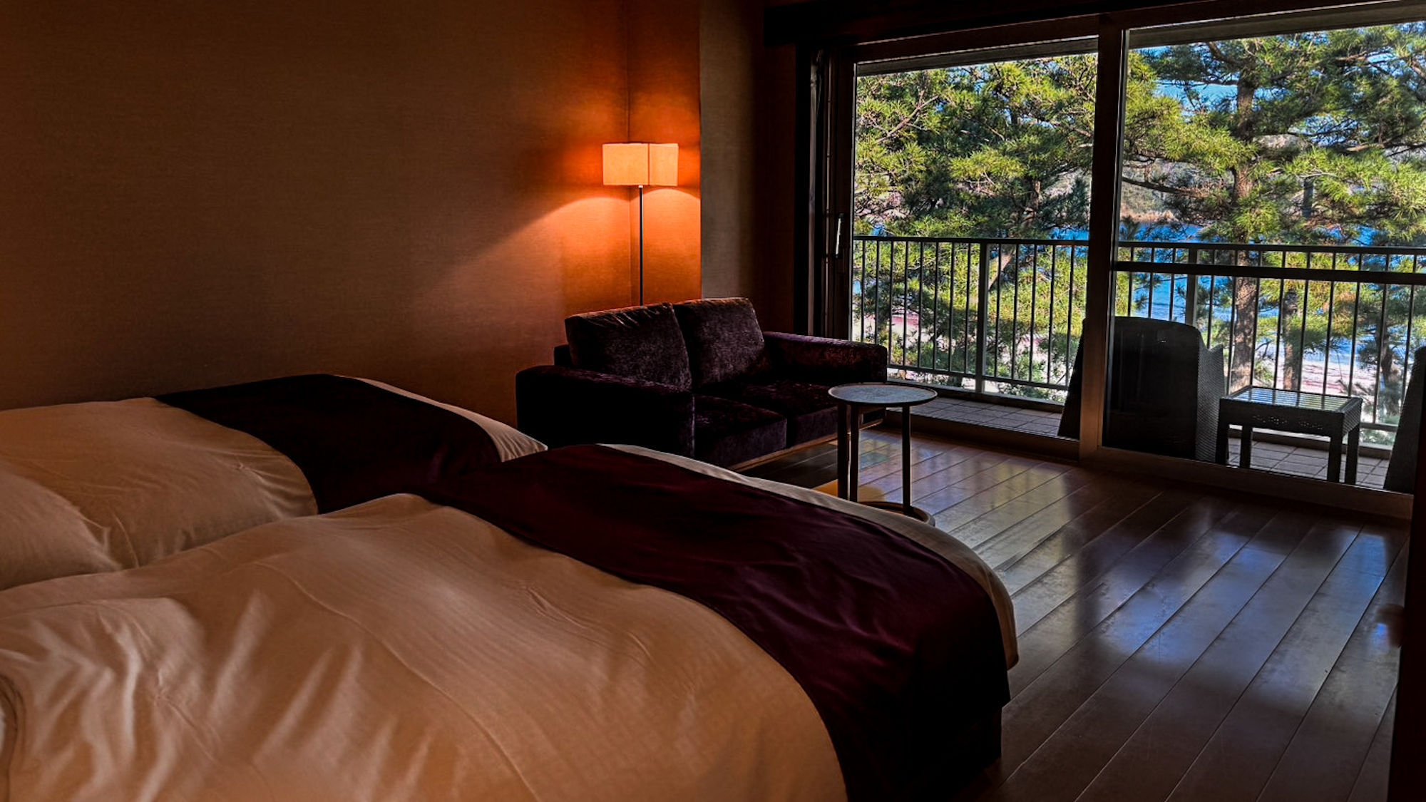 まるで海外リゾートのような松林越しの海を、心ゆくまで。※ベッドが2つ入ったお部屋です。3名様以降はお布団をご用意させて頂きます。