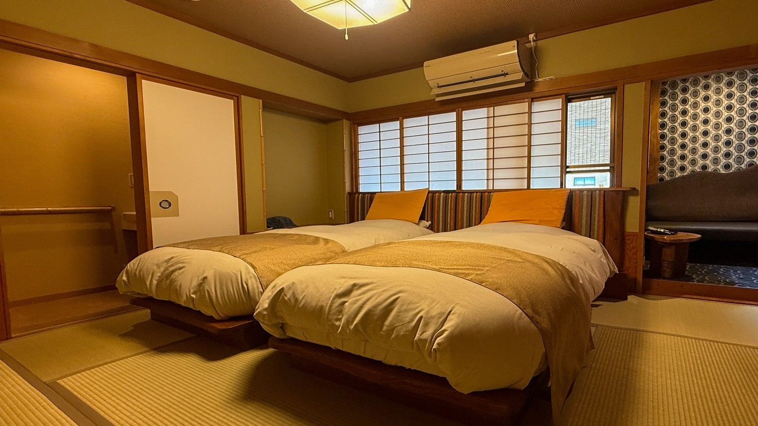2025年9月リニューアル【ベッドのお部屋】 8畳の和室にオーダーメイドのツインベッドを設置いたしました。