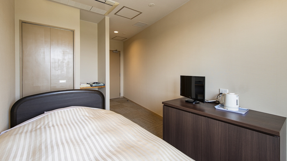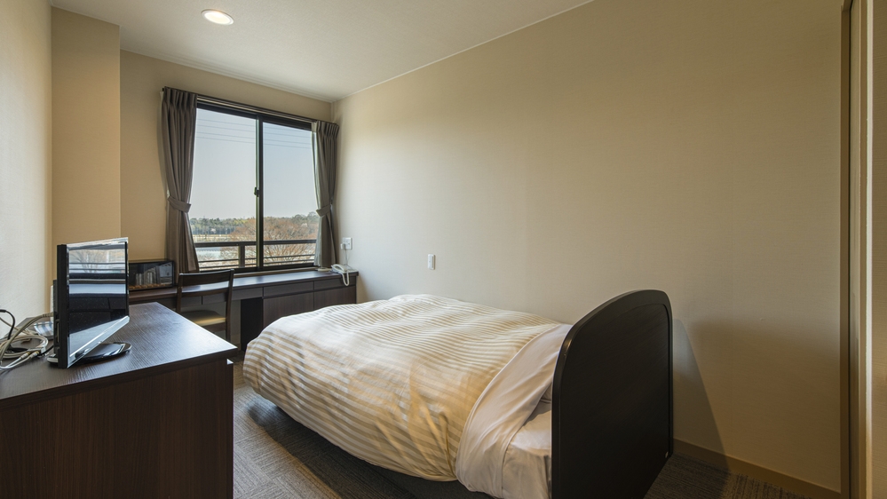 おひとり様専用のコンパクトなお部屋ですが、窓際にデスクも完備しておりますので、自然を眺めながら快適にお過ごしいただけます。ベッドは快適な寝心地のシモンズ製です。