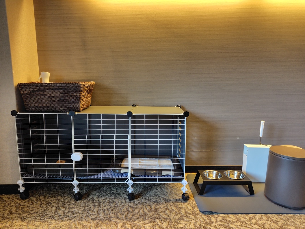 ※フロントロビー、レストラン、大浴場、他フロア等のパブリックスペースや他客室へはお連れ頂けません。但し、エレベーターは、キャリーに愛犬を入れてご利用頂けます。