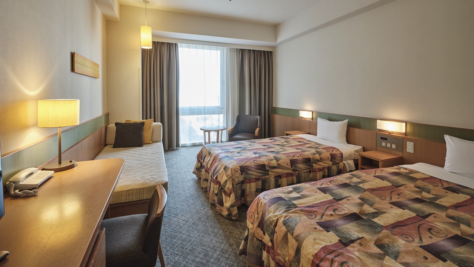 5名まで宿泊可能な洋室。グループやファミリーにおすすめです。※4名以上の場合はエキストラベッドもしくはソファベッドが追加になります。