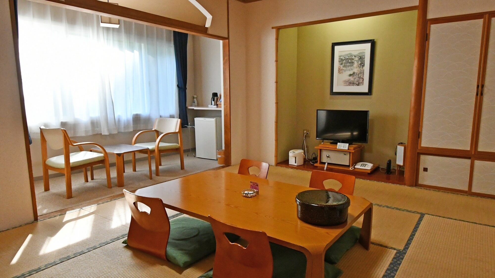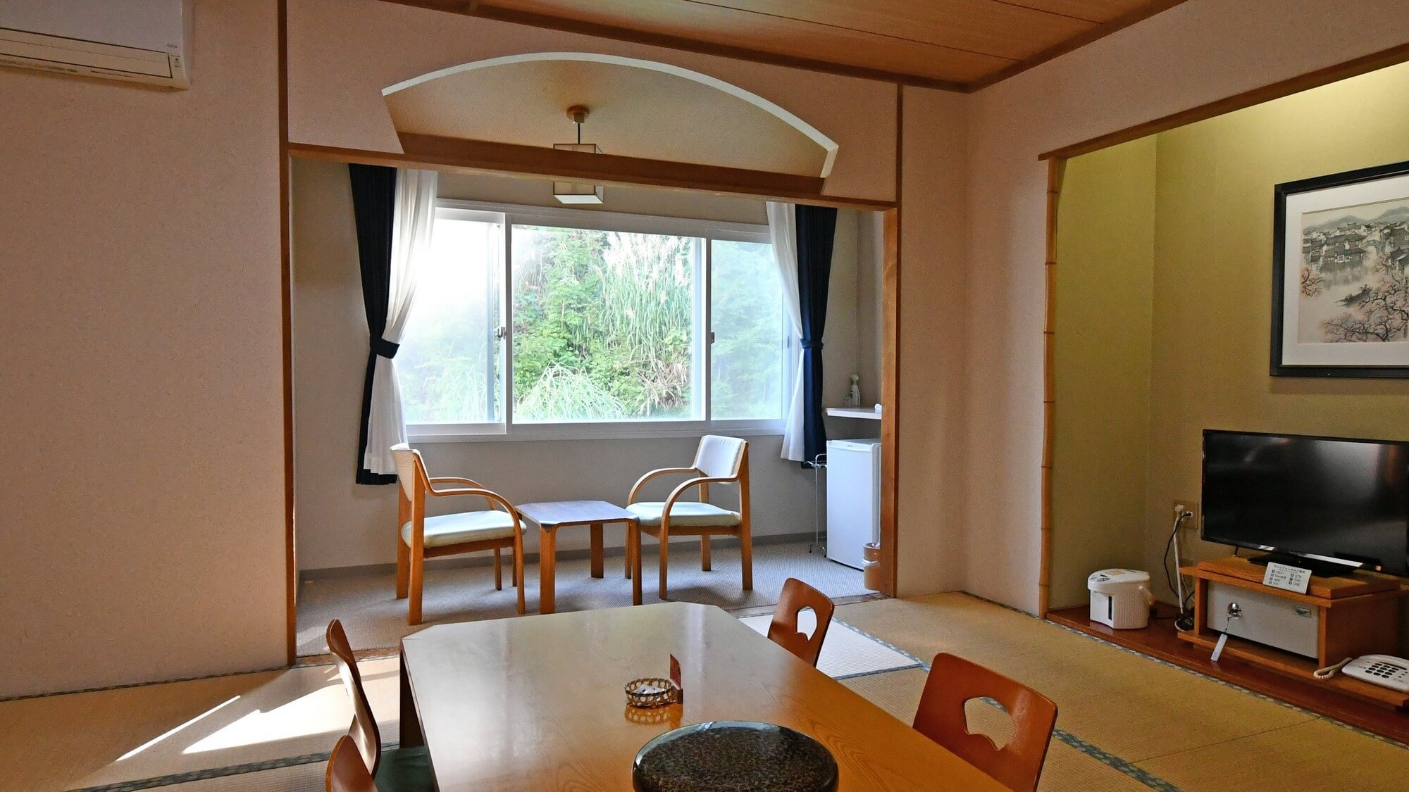 和室+ツインの二間続きで襖で区切れて寛げる広さ。家族・グループに最適